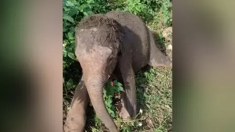 แม่อยู่ไหน "ลูกช้างป่า" พลัดหลงโขลงป่าดงใหญ่ พบบาดเจ็บที่เท้า สะดือยังไม่แห้ง