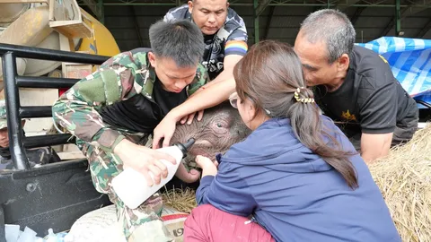 ทีมสัตวแพทย์เร่งฟื้นฟู "น้องข้าวต้ม" ลูกช้างป่าพลัดหลง อาการดีขึ้นต่อเนื่อง