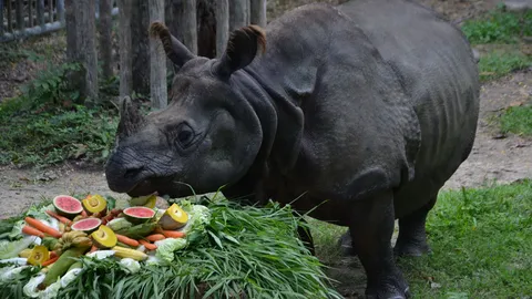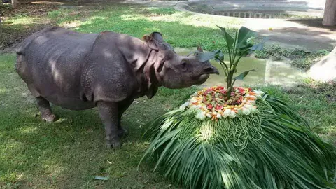 วันแรดโลก เลี้ยงขันโตก 'กาลิ' แรดอินเดียเพศเมีย เป็นม่ายไร้คู่14ปี