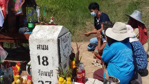 แห่ส่อง "เลขเด็ด" ศาลตายายข้างหลักกิโลเฮี้ยน หลังถูกติดต่อกันมาหลายงวด (คลิป)
