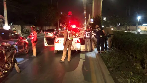 ชนดะ 11 คัน เก๋งมียาบ้า 2 เม็ดซิ่งหนีตำรวจ ไล่ยิงยางสกัดกว่าจะจนมุม