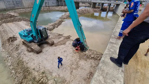 จะโดดหนีลงน้ำ แต่เจอคลองคอนกรีต หนุ่มค้ายาเจ็บ ต้องใช้แบ็กโฮช่วยยกขึ้นฝั่ง