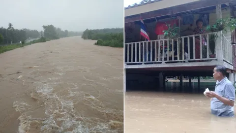 พังงาอ่วม! ฝนตกหนัก ทำน้ำท่วม 9 หมู่บ้าน สั่งเร่งอพยพคนขึ้นที่ปลอดภัย