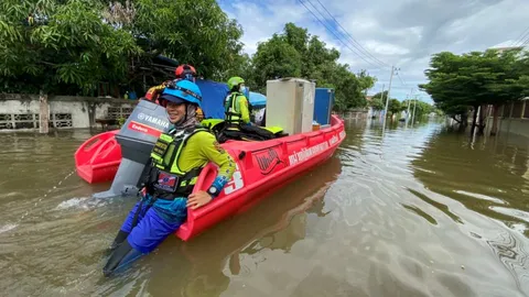 กู้ภัยอพยพเด็ก 8 เดือน-ผู้ป่วย ออกบ้าน หลังเกิดน้ำท่วมที่ลำปาง