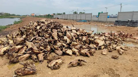 สยองมาก พบ "ซากหัววัว" ถูกทิ้งริมถนน ส่งกลิ่นเหม็นหนัก มีแมลงวันตอมเพียบ