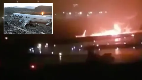 170 ชีวิตสุดระทึก หนีตาย! UTair ฝ่าพายุ ไถลออกนอกรันเวย์ ไฟไหม้ (คลิป)