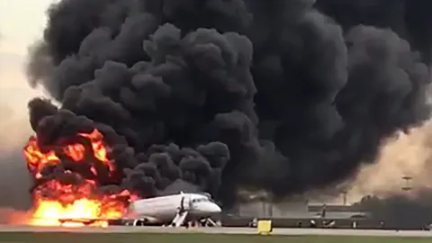 นาทีชีวิต ผู้โดยสารหนีตาย เครื่องบินรัสเซียลงจอดฉุกเฉิน ไฟท่วม ดับ 41 (คลิป)
