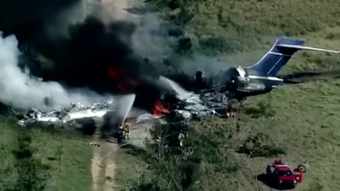 เครื่องบินในเทกซัสไถลหลุดรัยเวย์ไฟลุกท่วม ผู้โดยสารรอดตายปาฏิหาริย์