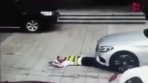 นอนขวางก็เอาไม่อยู่! คนอยากได้ที่จอด ขับรถทับ รปภ.จีนหน้าตาเฉย (คลิป)