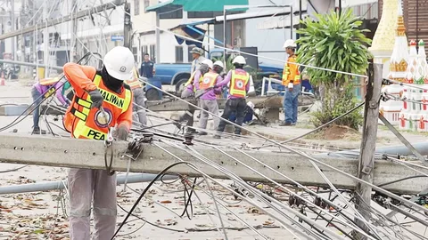 กฟภ.ลพบุรี ซ่อมเสาไฟฟ้าแรงสูงที่พายุพัดล้ม 11 ต้น ตรวจพบนอตยึดเสาถูกขโมยถอด