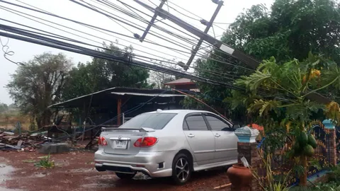 อุดรธานีอ่วม พายุฤดูร้อนถล่มเสียหายยับ เสาไฟฟ้าล้มระเนนระนาด 70 ต้น