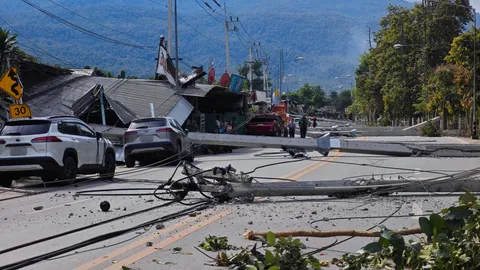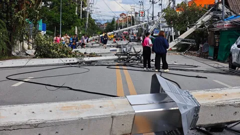 พายุลูกเห็บถล่มเชียงแสน ทำเสาไฟฟ้าล้มกว่า 10 ต้นไฟดับทั้งเมือง
