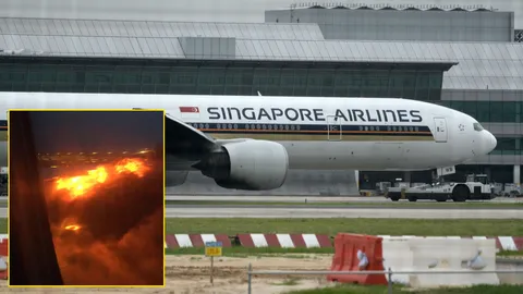 ผู้โดยสารสุดช็อก! ไฟไหม้เครื่องบินสิงคโปร์ แอร์ไลน์ส ขณะลงจอดฉุกเฉิน (ชมคลิป)