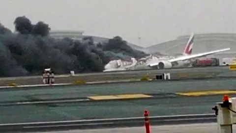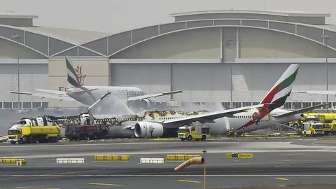 สุดระทึก!เครื่องบินเอมิเรตส์ ลงจอด กระแทกรันเวย์สนามบินดูไบ ไฟลุกท่วม