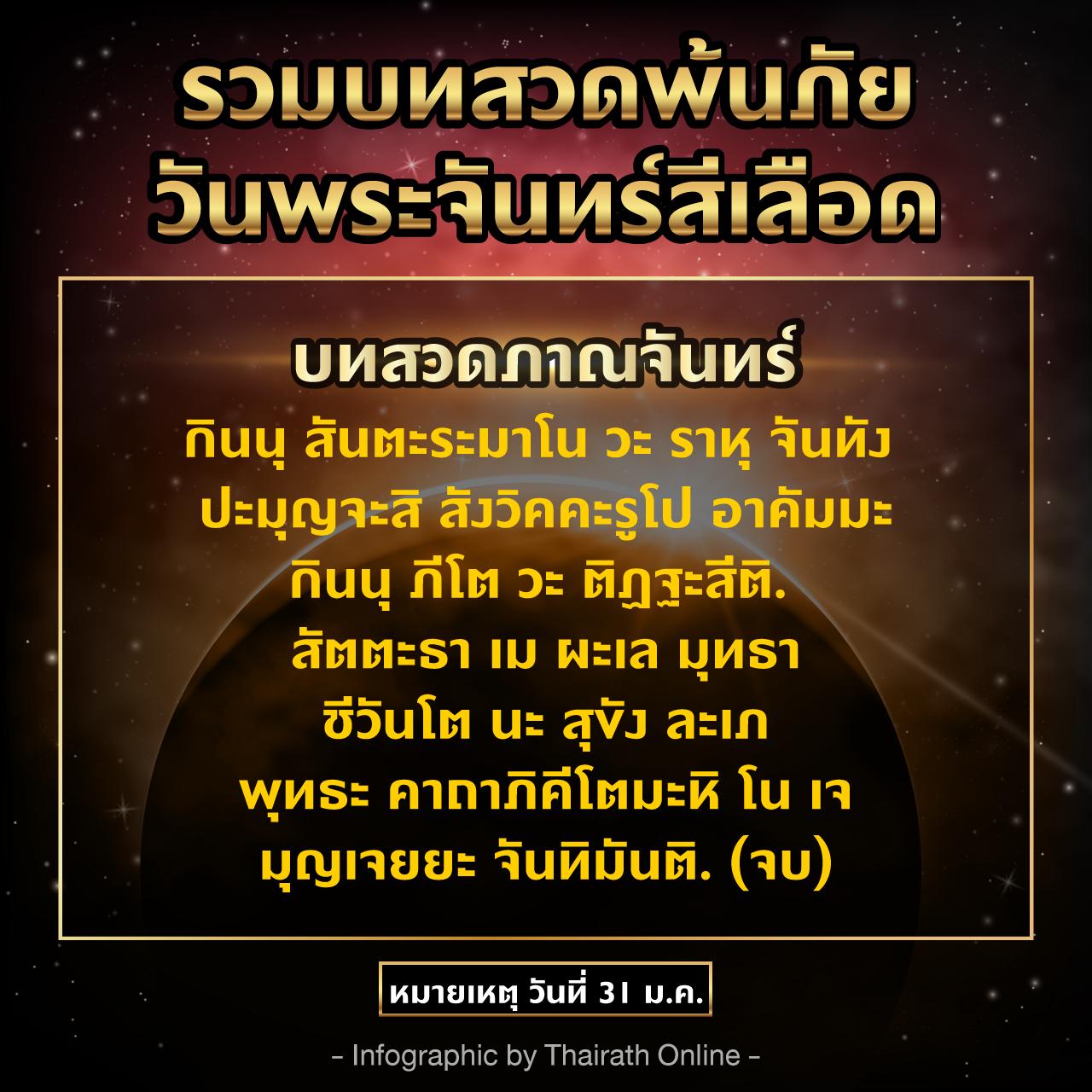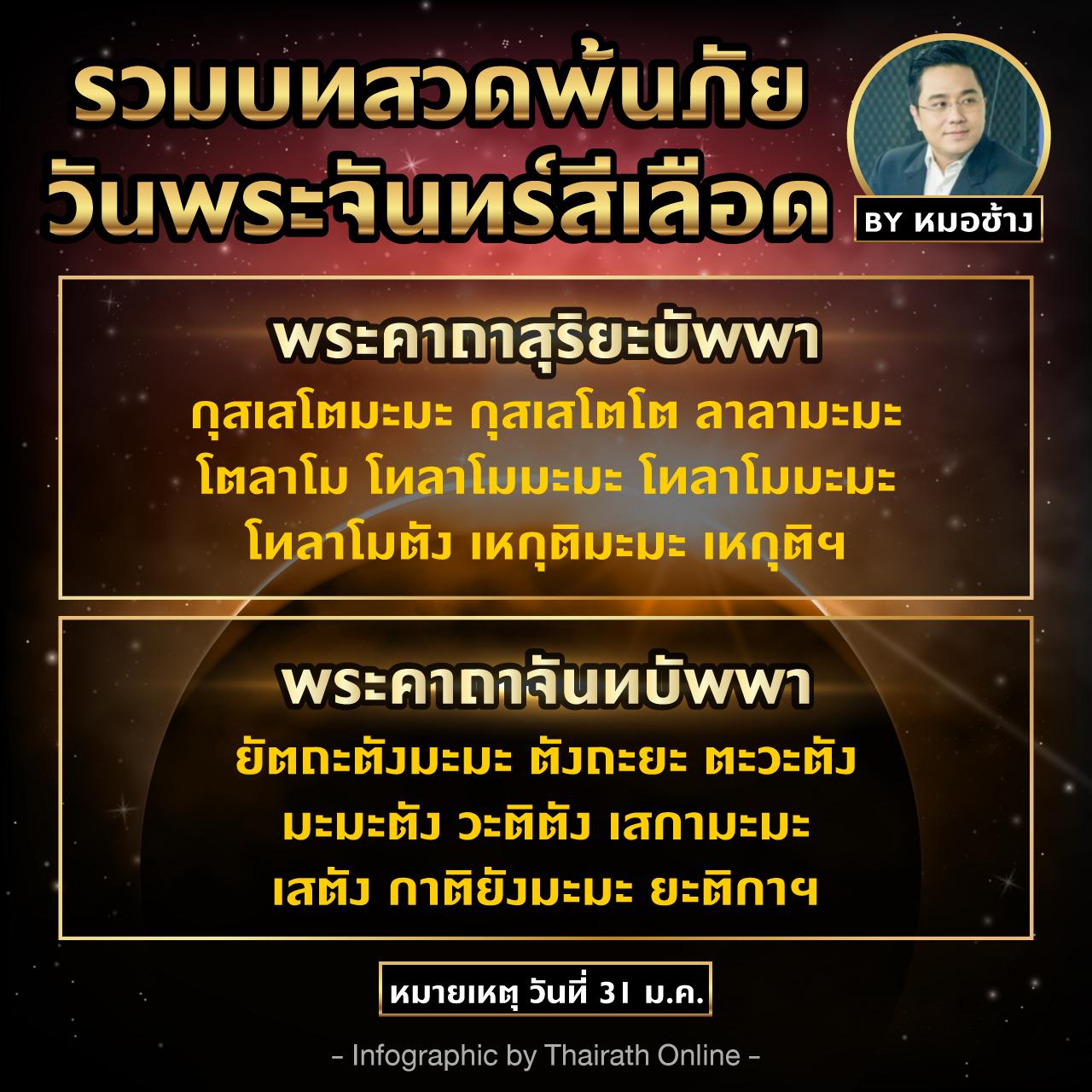 อ่านเพิ่ม : คืนนี้พระจันทร์สีเลือด หมอช้าง ชี้ราศีต้องระวัง พร้อมคาถาแก้เคล็ด