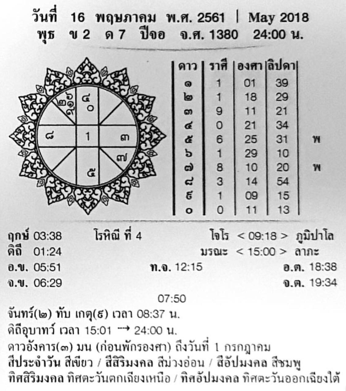 เขายิ้มแย้มและปฏิเสธการให้เลข หลังจากนั้นหลายวันพร้อมกลับมาด้วยกระดาษ 1 แผ่น ในการคำนวณ เขาย้ำว่าไม่ได้ใบ้เลข แต่ลองเอาไปดูตาดีได้ตาร้ายเสียแล้วแต่โชคแต่ละคน