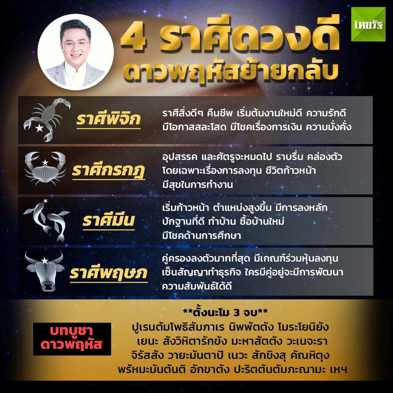 แชร์ง่ายได้ประโยชน์ ล่าสุดวันที่ 25 พ.ค.ที่จะถึงนี้ ดาวพฤหัสย้ายเวลา 17.10 น. เซกซั่น horoscope ไทยรัฐออนไลน์ทำอินโฟกราฟิกง่ายๆ คำทำนาย 4 ราศี พร้อมกับบทบูชาดาวพฤหัสมาให้แชร์กัน.