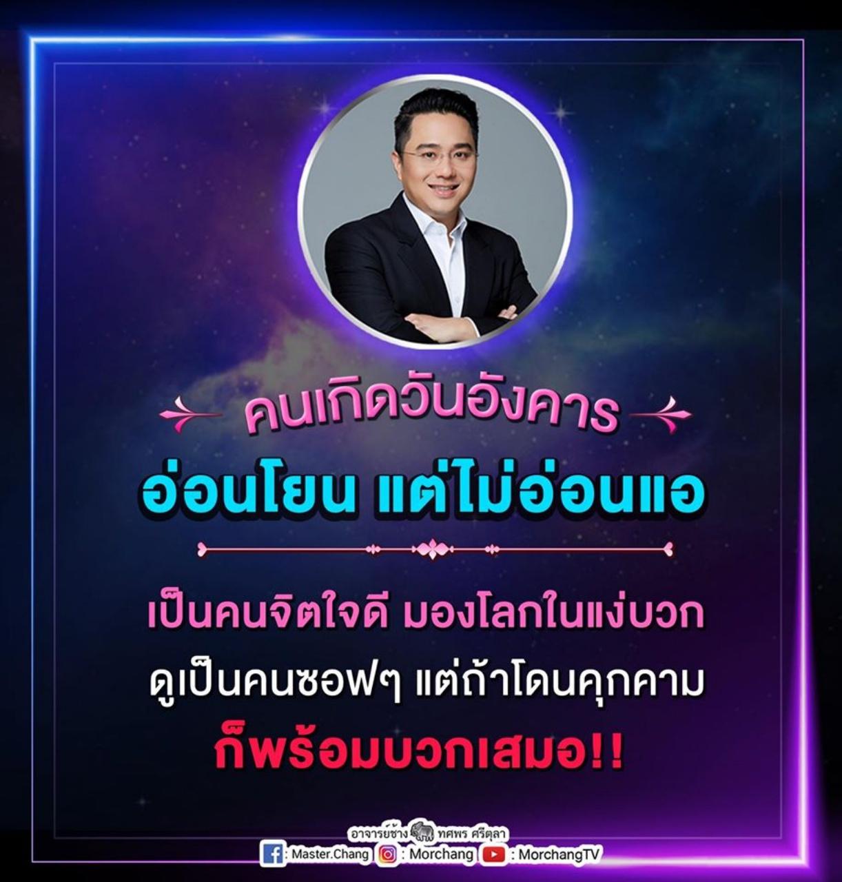 นิสัยจากวันเกิด หมอช้าง อาจารย์ทศพร ศรีตุลา บอกกับ horoscope ไทยรัฐออนไลน์ ว่านิสัยของคนเกิดวันอังคารเป็นแบบนี้ จริงไหม?.... เช็กเลย