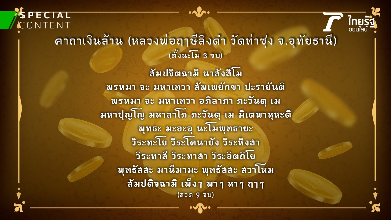 1. คาถาเงินล้าน (หลวงพ่อฤาษีลิงดำ วัดท่าซุง จ.อุทัยธานี)