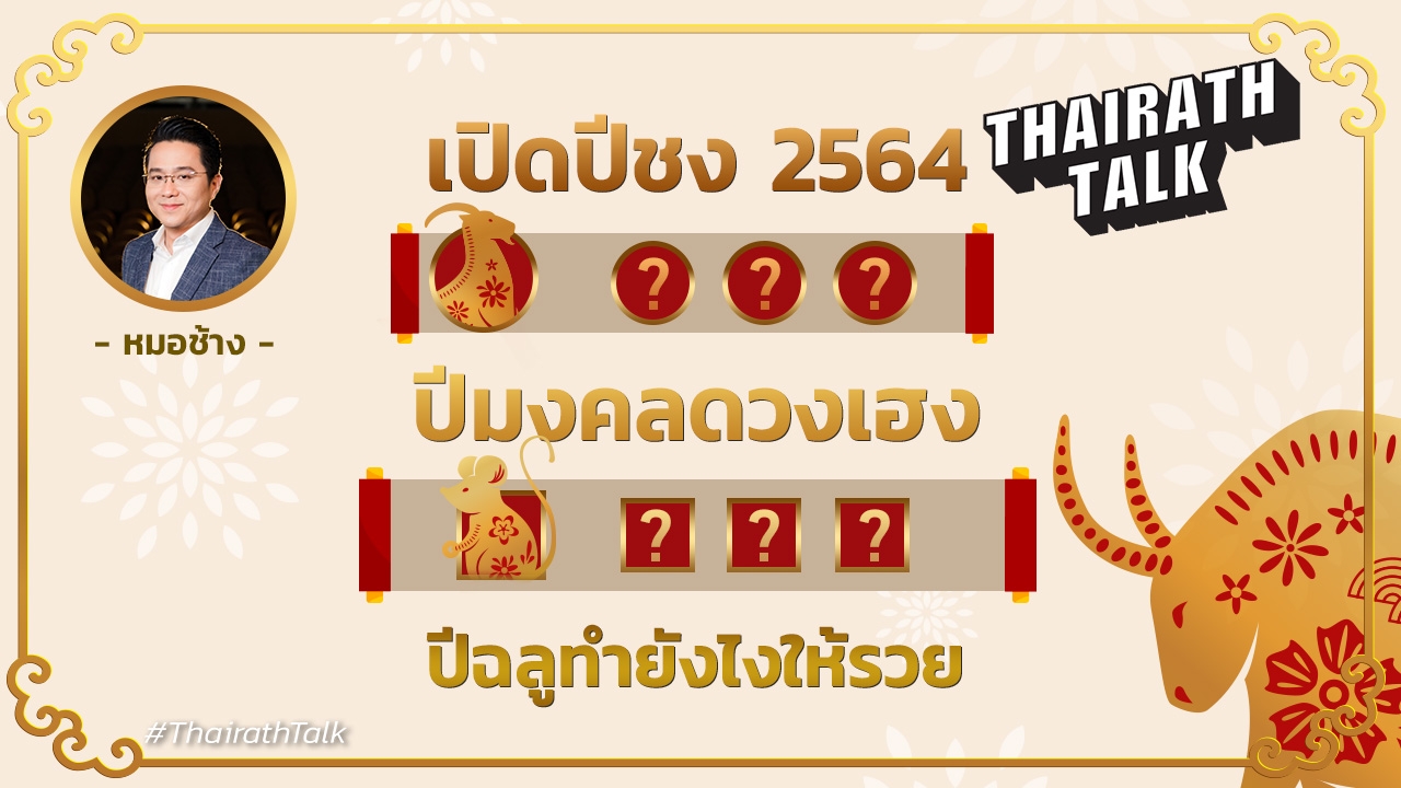 "พอเริ่มต้นปี 2564 ใครๆ ก็พูดถึงแต่ปีที่ชงกับปีฉลู เรามาพูดถึงปีเฮงที่ถูกกับปีฉลูทองกันบ้างนะครับว่ามีปีนักษัตรไหนบ้าง?" เมื่อพิธีกรจอมขยี้แห่งรายการ Thairath Talk กล่าวเปิดประเด็น คำตอบจาก หมอช้าง ทศพร ศรีตุลา หมอดูชื่อดังผู้มีอิทธิพลในโลกออนไลน์ก็พรั่งพรู พร้อมเทคนิคแก้เคล็ดอย่างง่ายๆ สำหรับคนที่เกิดในปีชงด้วย