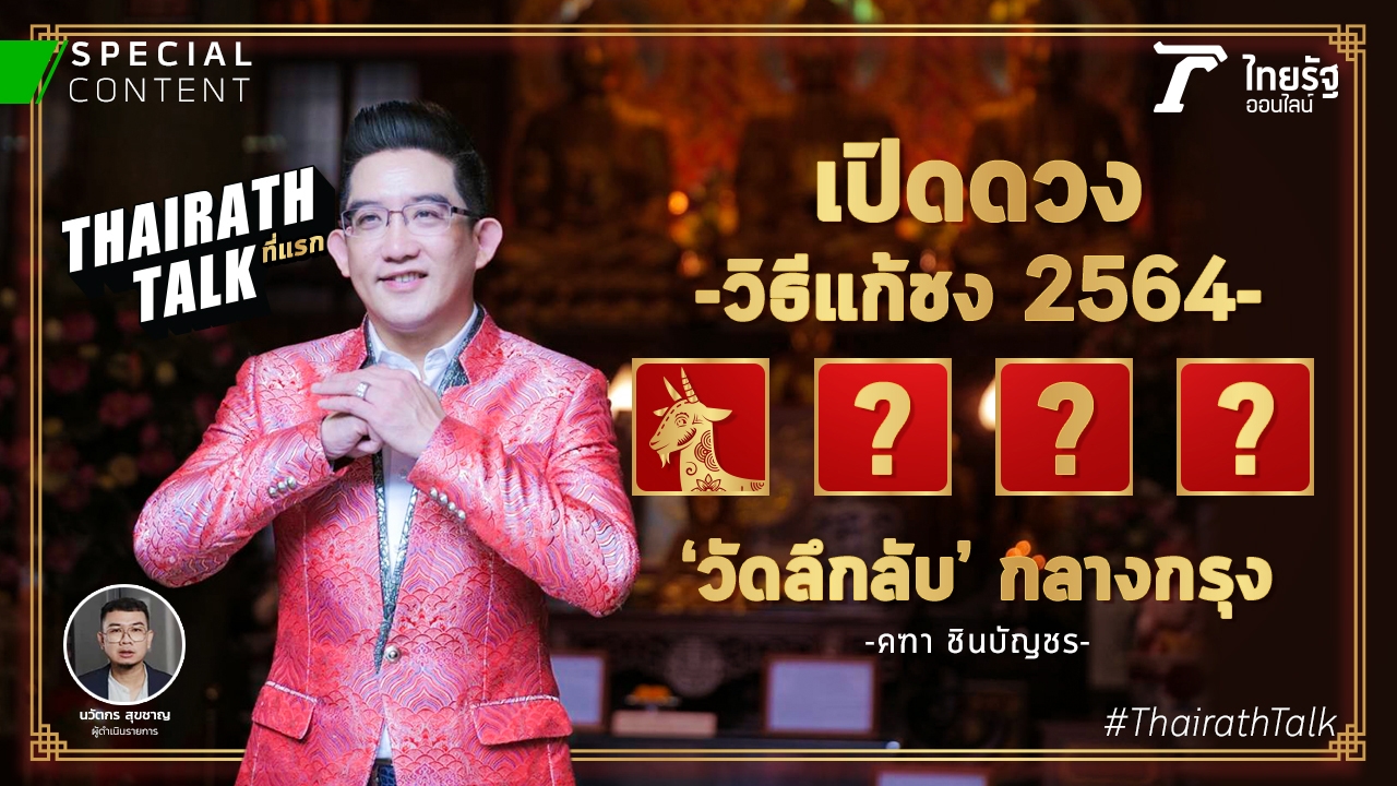 เป็นธรรมเนียมของรายการ Thairath Talk ในทุกเทศกาลสำคัญ เราจะเชิญหมอดูชื่อดังระดับประเทศมาทำนายดวงแบบเจาะลึก ครั้งนี้เทศกาลตรุษจีน หรือปีใหม่จีน 2564 ซึ่งตรงกับปีนักษัตร 'ปีฉลู' ด็อกเตอร์ อาจารย์คฑา ชินบัญชร ได้ให้เกียรติพาแฟนๆ รายการทัวร์วัดแก้ชงไปง่ายในกรุงเทพมหานคร ใครดวงชงปีนี้มันแย่เหลือเกินต้องแก้อย่างไร หรือไม่ชงอยากเสริมสิริมงคล ติดตามเลย...