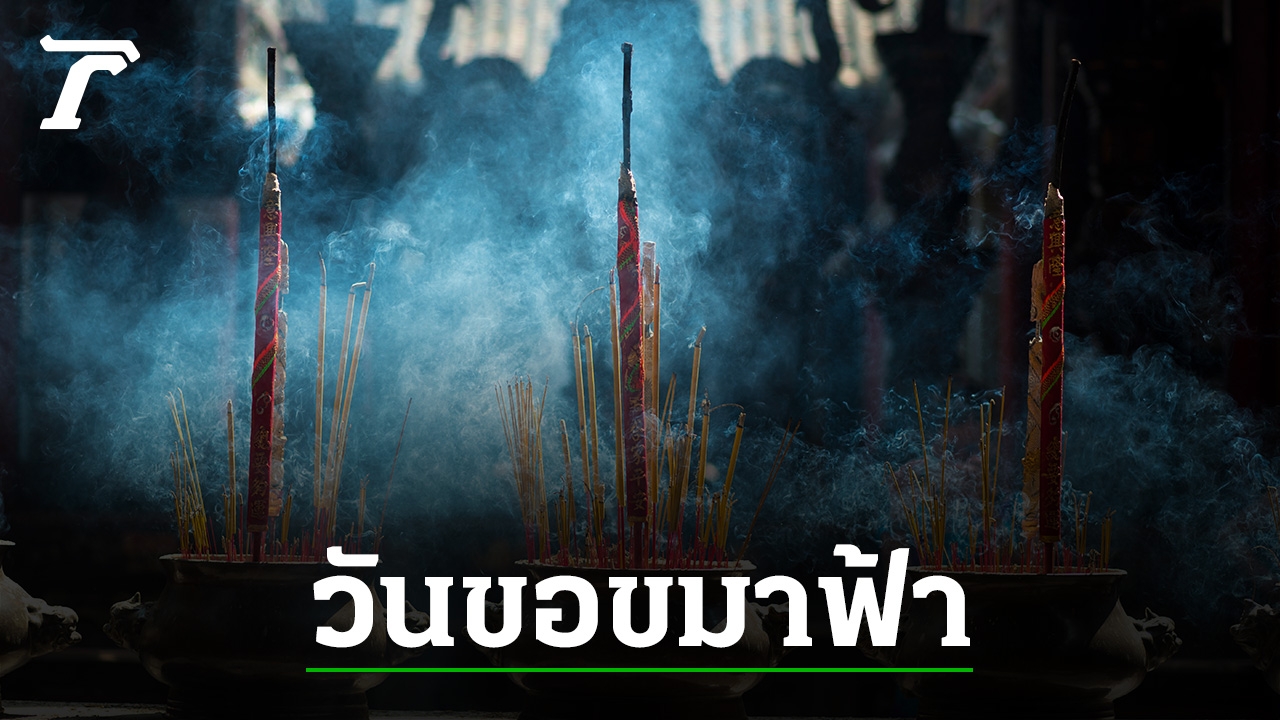 ในวันฟ้าอภัยแบบนี้ข้าพเจ้าขอมาต่อฟ้าและสิ่งศักดิ์สิทธิ์ที่เคยล่วงเกินลบหลู่ เคยบนบานศาลกล่าวหรือติดค้างท่านไว้ ไม่ว่าชาติใดไม่ว่าเจนตาหรือไม่เจตนาก็ดีไม่ว่าจะล่วงเกินทั้งกายวาจาและใจ ข้าพเจ้าขอขมาต่อฟ้า และฟ้าจงโปรดให้อภัย ยกโทษให้ข้าพเจ้า