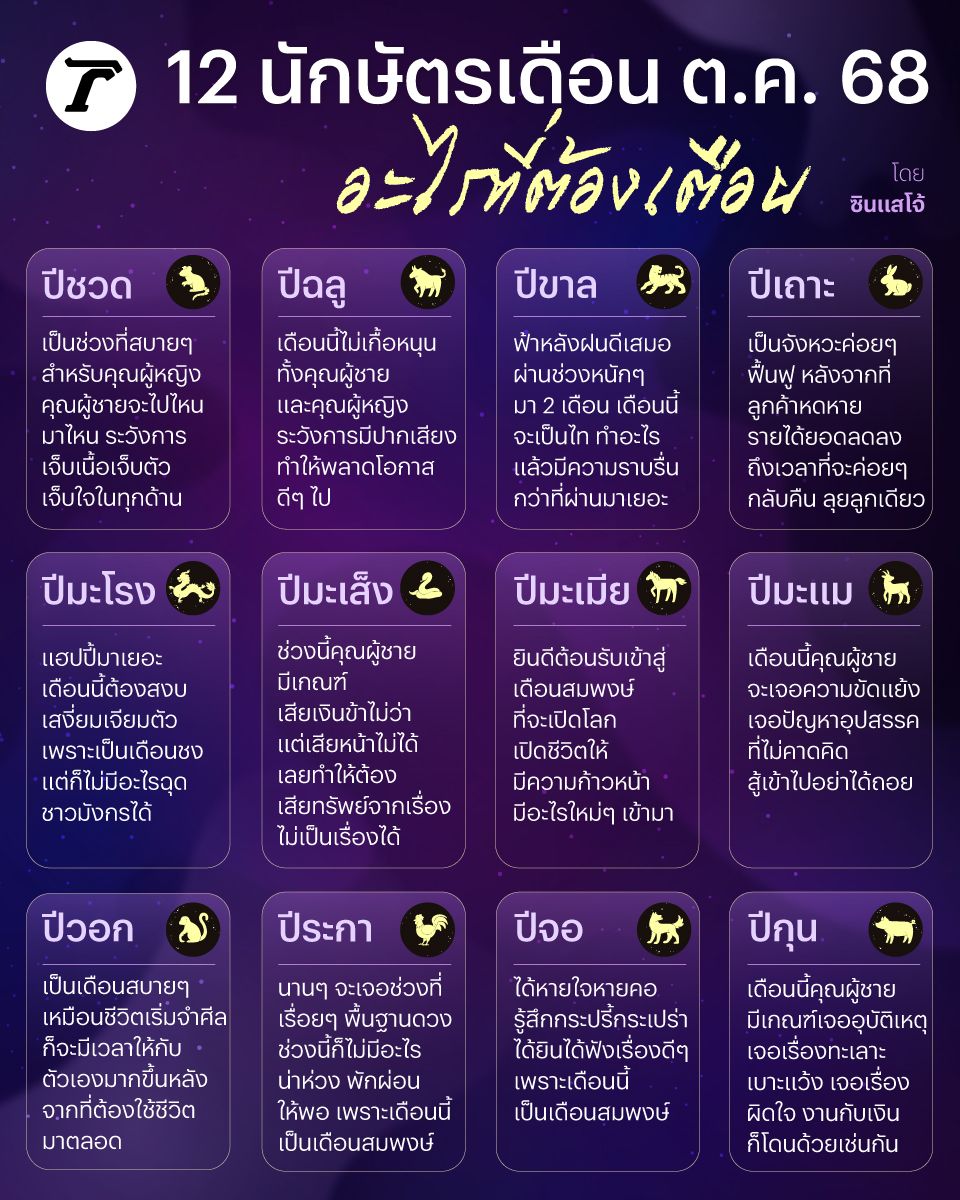 ซินแสโจ้ คมสัน พันธุ์วิชาติกุล เผยดวง 12 นักษัตร เดือนตุลาคม ที่ต้องเตือน และรู้ก่อนให้เตรียมรับมืออย่างไร
