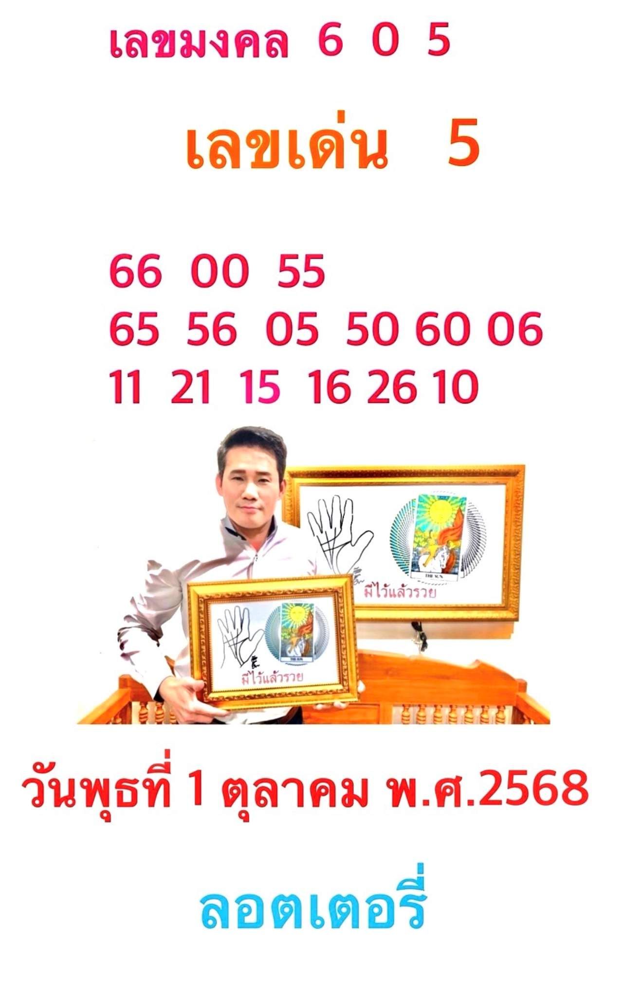 มาเป็นประจำทุกวันที่ 1 และ 16 ของทุกเดือน สำหรับ เลขมงคล ของ อ.มงคล รอดเที่ยงธรรม ที่แฟนคลับตามหานอกจาก ดวง 12 ราศีที่อ.มงคล เปิดเป็นแนวทางให้ชาว 12 ราศี รู้ก่อนใครว่าเลขเด่น เลขมงคลใกล้ตัวของแต่ละราศีนั้นอยู่ที่ใด โดย 1 ต.ค. 68 นี้อ.เปิดไพ่ยิปซี ได้เลขดังต่อไปนี้