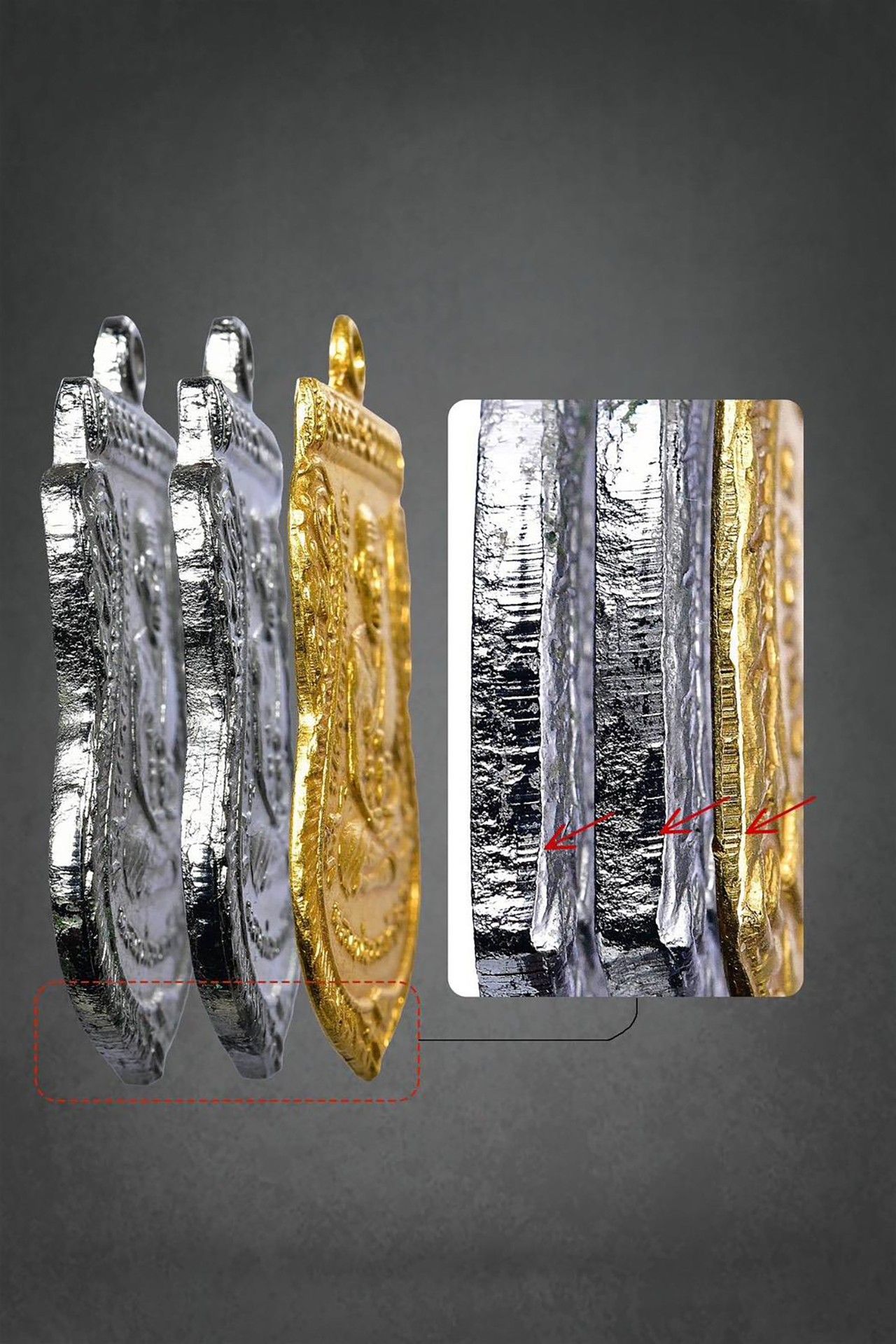 ผมได้นำเหรียญทองคำเหรียญนี้มาเปรียบเทียบกับพิมพ์อัลปาก้ามาตรฐานอย่างละเอียด พบว่า ตัวตัดและรายละเอียดตรงกันทุกจุด ไม่ว่าจะเป็นเส้นพิมพ์ เส้นซอก หรือจุดตำหนิสำคัญที่สายตาเซียนพระตัวจริงสามารถจดจำได้อย่างแม่นยำ ความตรงนี้ไม่ใช่ความบังเอิญ แต่สะท้อนถึงกระบวนการผลิตที่มีความเที่ยงตรงสูง