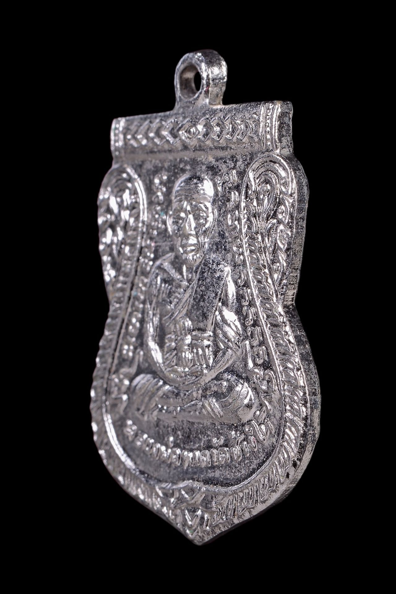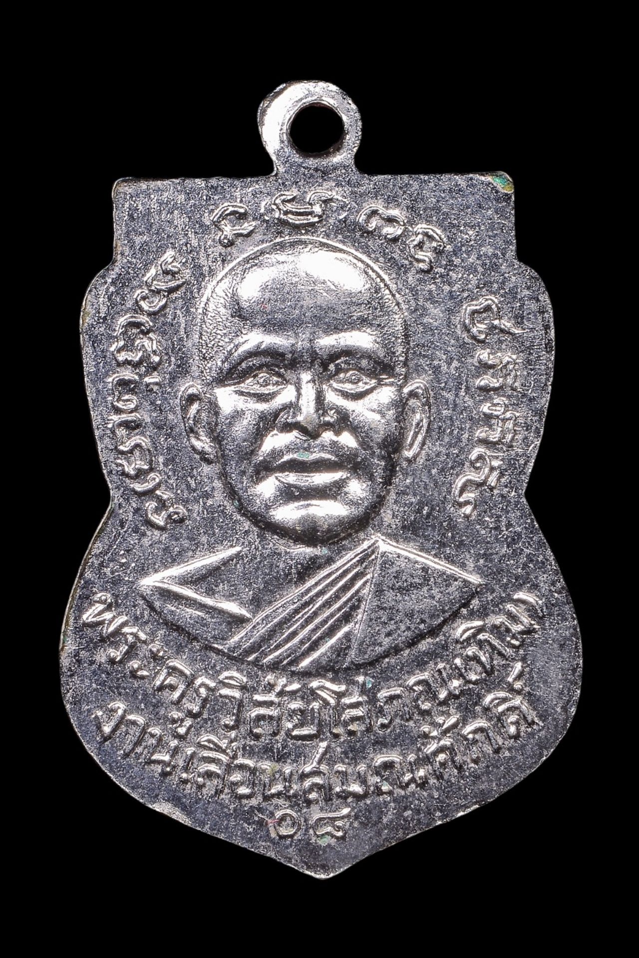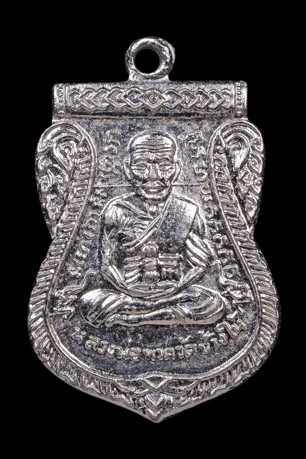 เหรียญเลื่อนสมณศักดิ์ ลักษณะเป็นเหรียญรูปทรงเสมา มีหูในตัว ด้านหน้าเหรียญเป็นรูปหลวงปู่ทวดนั่งขัดสมาธิ มีอักษรรอบข้างเป็นภาษาขอม มีรูปช้างที่ด้านข้างทั้งสองฝั่งที่บริเวณฐานมีอักษรคำว่า "หลวงพ่อทวด วัดช้างให้"