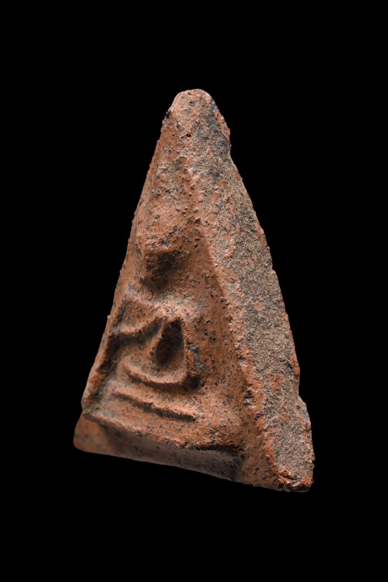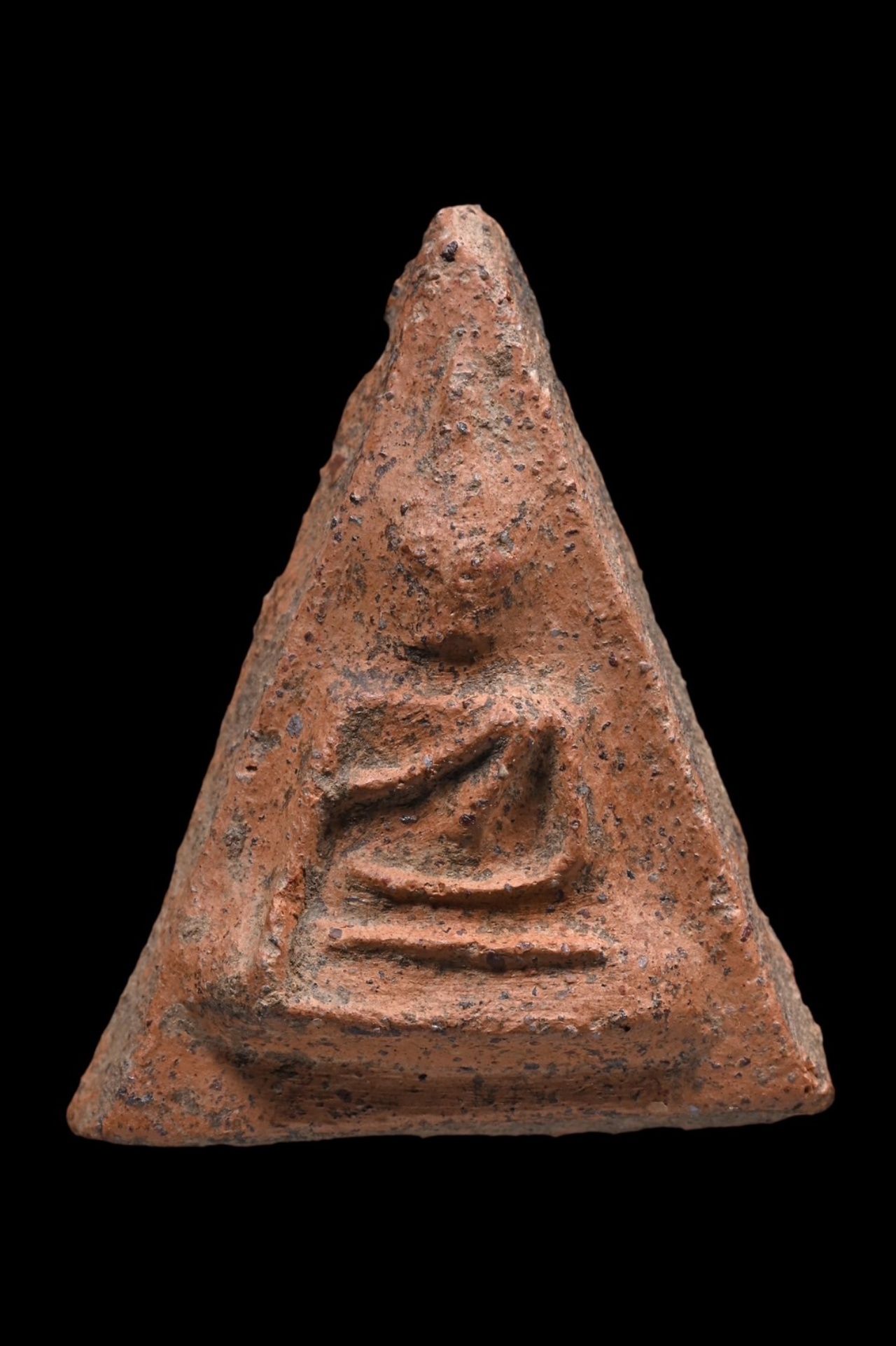 พระนางพญา กรุโรงทอพิมพ์ไม่มีหู เนื้อดิน เอกลักษณ์ที่งดงามของพระนางพญาคือทรงสามเหลี่ยมหน้าจั่ว