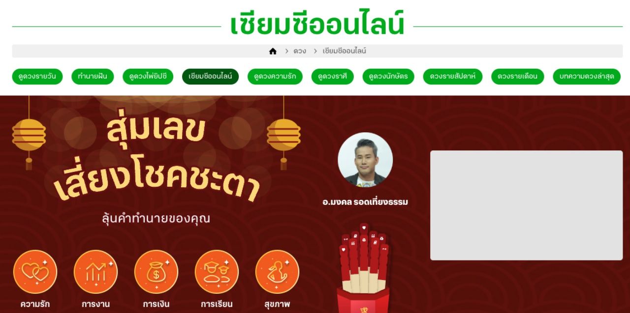 เตรียมพบกับการเขย่าเซียมซี ดูดวงความรัก การงาน การเงิน การเรียน สุขภาพ บนหน้าเว็บไทยรัฐออนไลน์ Section ดวง เร็ว ๆ นี้.