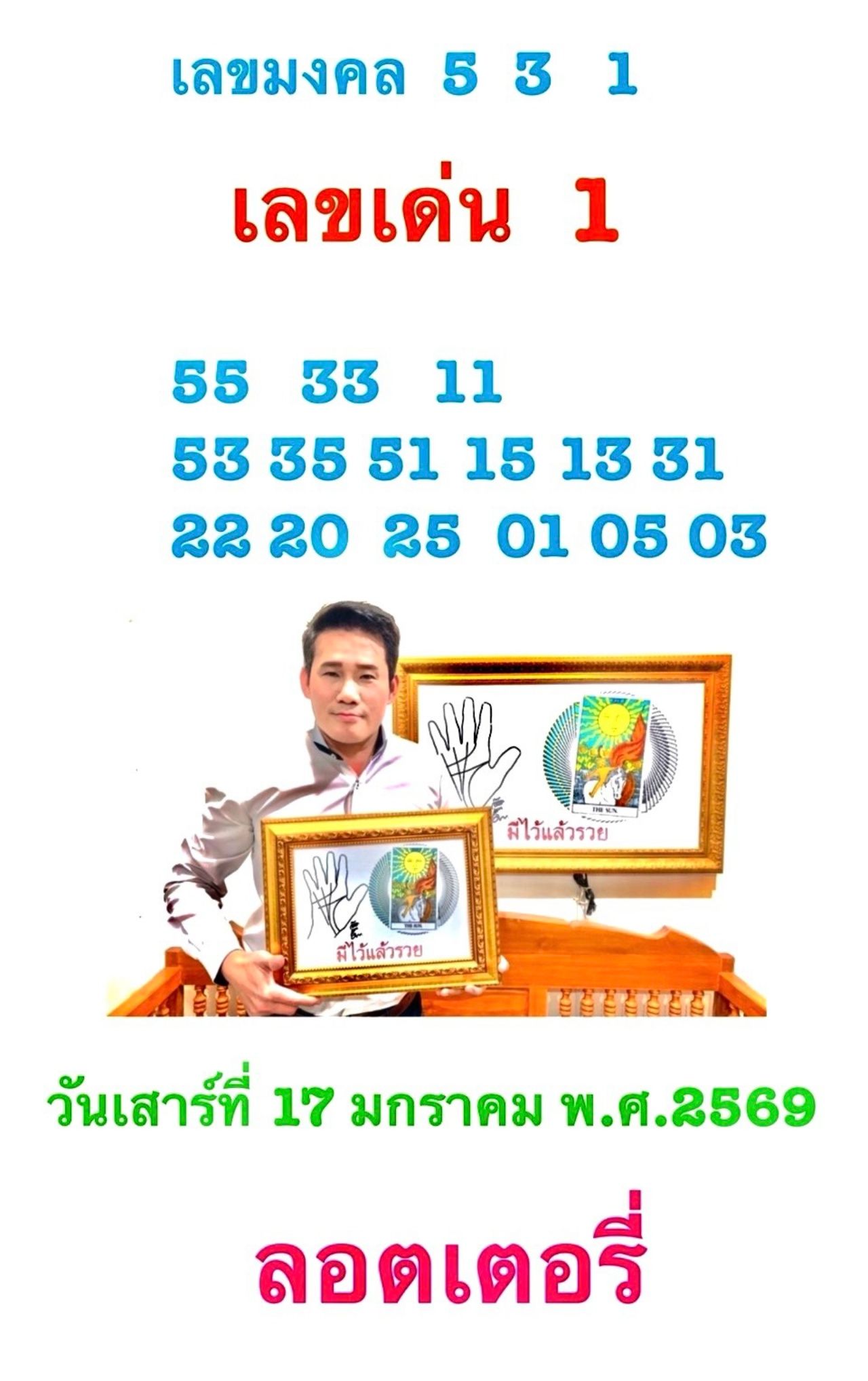 เจาะลึกดวงชะตา เลขนำโชค วันเสาร์ที่ 17 มกราคม 2569 อาจารย์มงคล รอดเที่ยงธรรม เรียกว่าวันเสาร์นี้ถือเป็นวันแรง วันดี ใครที่มีเป้าหมายใหญ่ต้องลุย มาเช็กฤกษ์และเลขมงคลประจำวันกัน