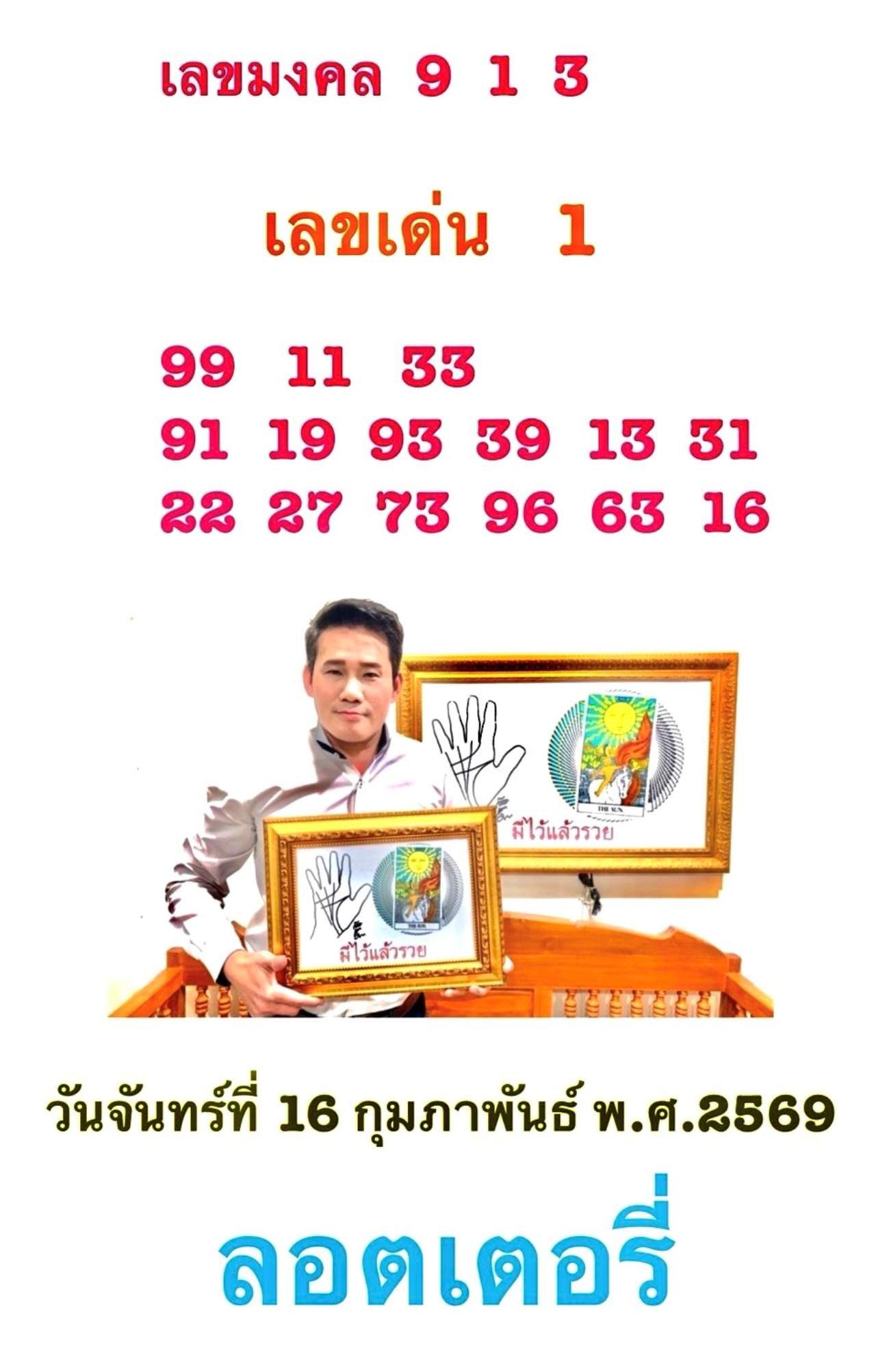 เลขเด่นไพ่ยิปซี อาจารย์มงคล รอดเที่ยงธรรม เผยเลขมงคล 16 ก.พ. 69 เปิดเลขเด่น ฤกษ์ดี และสีมงคล