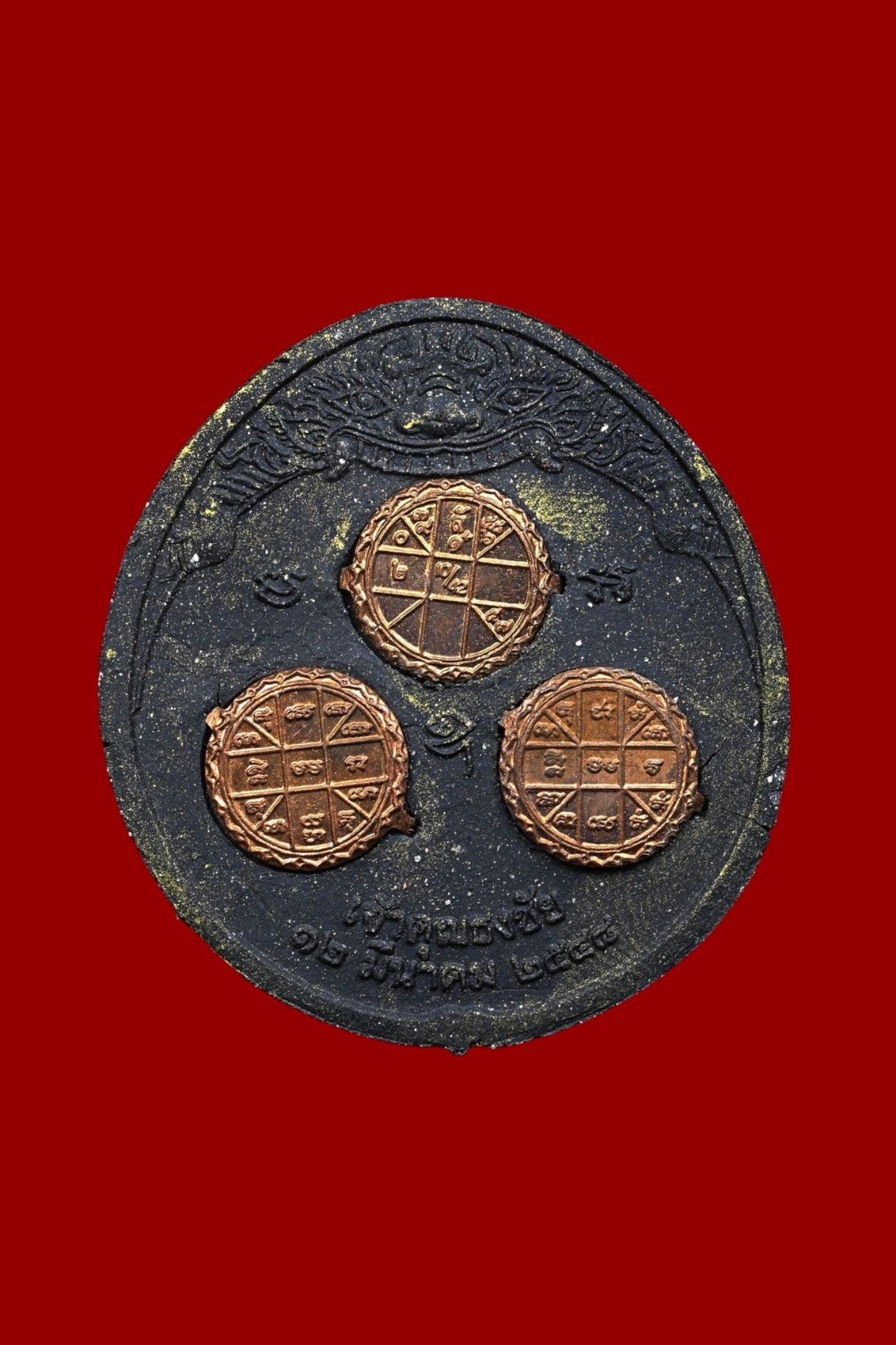 ด้านหลัง ประกอบด้วย ดวงเมืองกรุงเทพมหานครอยู่ด้านบน ด้านล่างซ้ายขวา คือ ยันต์จันทรประภา โพธิสัตว์ และสุริยประภา โพธิสัตว์ หรือ สุริยัน-จันทรา ซึ่งเป็นยอดแห่งพญายันต์ที่ให้คุณทางด้านโชคลาภ…