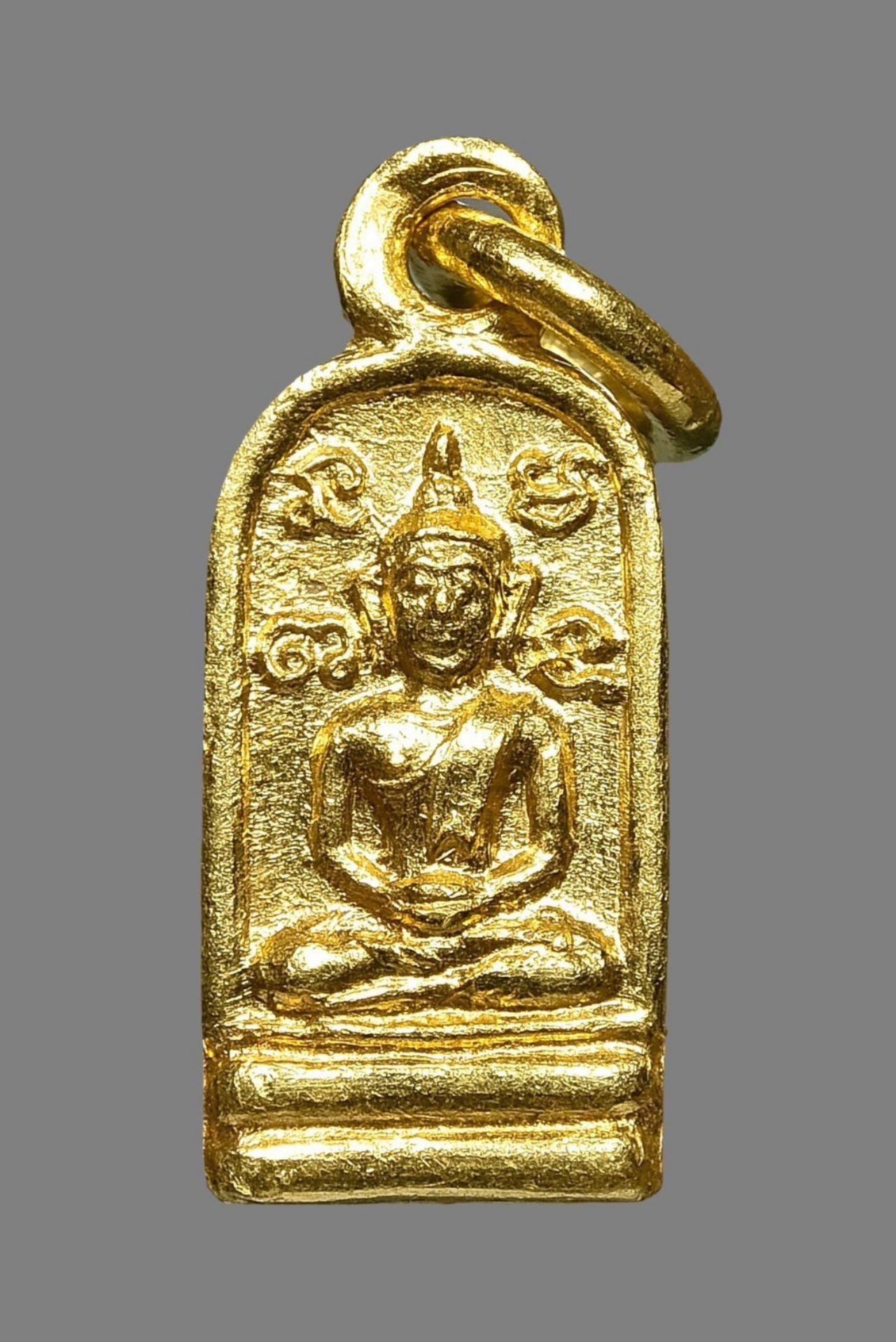 ปรกใบมะขาม รุ่นนี้สร้างปี 2508 โดยปกติที่พบเจอจะเป็นเนื้อฝาบาตรหลังนางกวัก แต่องค์นี้เป็นเนื้อทองคำ หลังด้านบนมีคำว่า หลวงพ่อโสธร ตรงกลางเป็นยันต์อุณาโลม ด้านล่างมีคำว่า ราชพุทธรังสี จำนวนการสร้างน้อยมากและหายากมากครับ