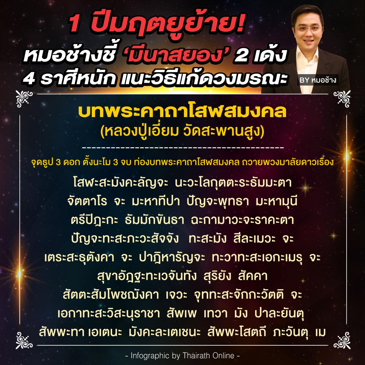 มีนาคม 4 ราศี เมษ ตุล เมถุน ธนู สยองหนัก! หมอช้างเตือนเด้งแรก 'ดาวแห่งความตายย้าย' ครบรอบ 1 ปี และจะอยู่ตรงนี้อีก 6 ปี ชี้เด้งที่ 2 ดาวใหญ่โคจรผิดปกติ ระวังแผ่นดินไหว ภัยธรรมชาติ อุบัติเหตุจากขนส่งสาธารณะ ย้ำวิธีแก้ไหว้ศาลหลักเมือง...
