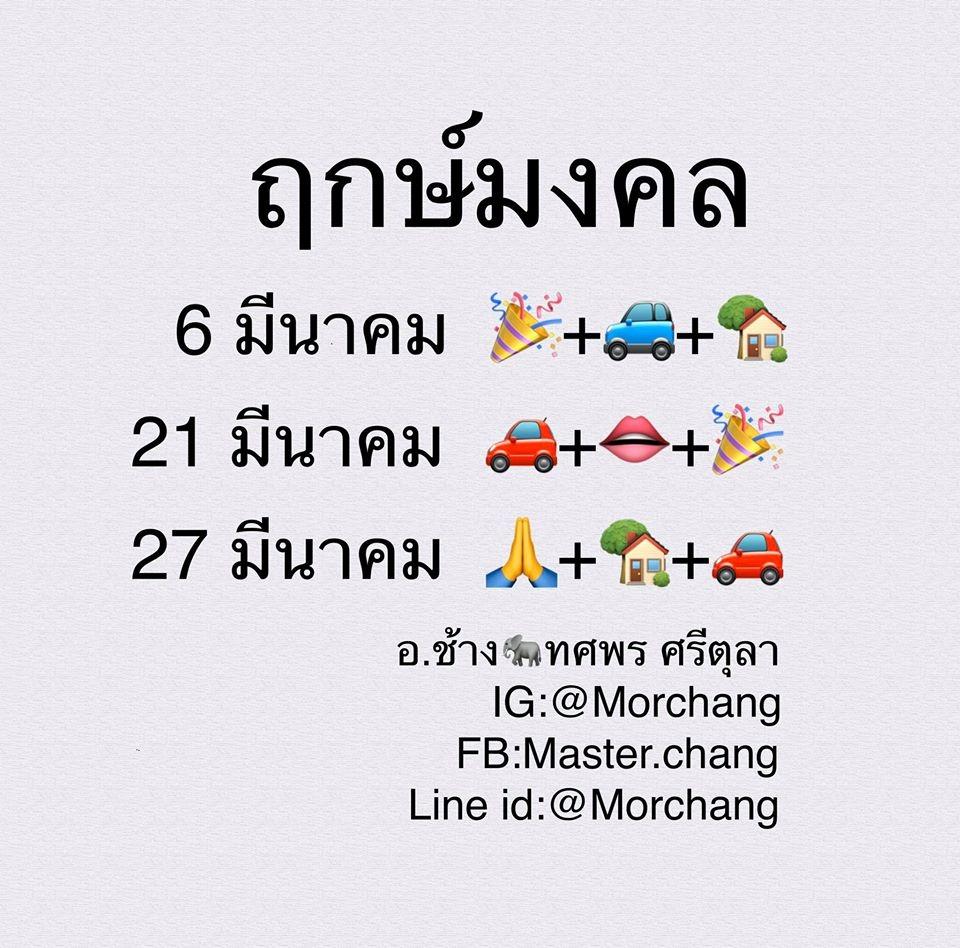 มีฤกษ์งามยามดีมาบอกทุกๆ เดือนสำหรับ 'หมอช้าง' ทศพร ศรีตุลา หมอดูชื่อดังที่เปิดฤกษ์ดี เดือนมีนาคม 2563 ให้กับแฟนๆ ไทยรัฐออนไลน์ ได้รู้กัน หากใครมีแพลนจะออกรถ หาฤกษ์ขึ้นบ้านใหม่ หาฤกษ์เจรจา หรือหาฤกษ์เดินทาง และอีกมากมาย ลองดูวันดีๆ ที่อาจารย์ช้างแนะนำกัน....