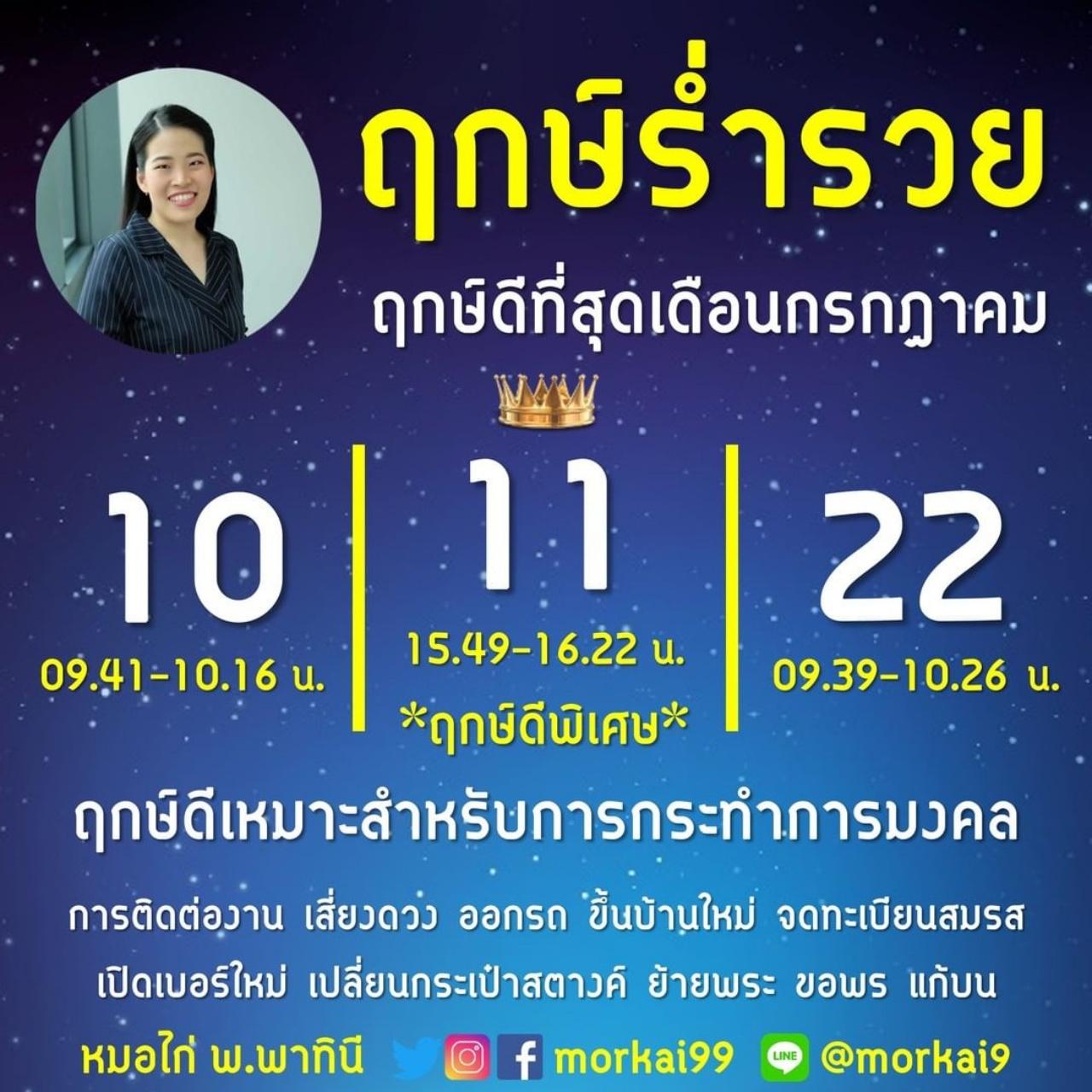 วันที่ 11 กรกฎาคม เวลา 15.49 - 16.22 น. ฤกษ์ดีพิเศษ