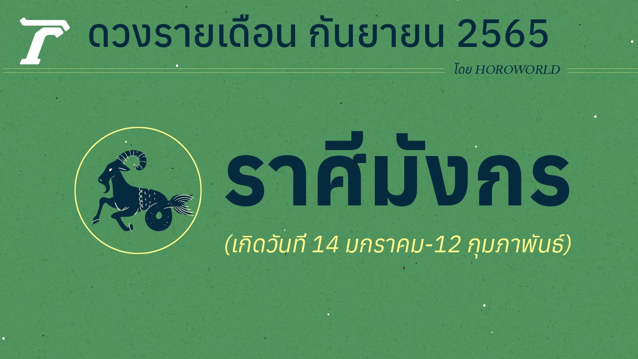 เปิดคำทำนายดวงชะตาชาวราศีมังกร เดือนกันยายน 2565 โดย HoroWorld การงานยังทรงๆ ไปได้เรื่อยๆ ส่วนการเงิน ต้องบริหารเงินอย่างรอบคอบ ถ้าผ่านเดือนนี้ไปได้ จะมีฐานะมั่นคงเลยทีเดียว แนะต้องมีสติและใจเย็นให้มาก ไม่ควรวู่วามเอาแต่อารมณ์ตนเองมากจนเกินไป เพราะมีแนวโน้มจะเกิดอุบัติเหตุเจ็บตัวด้วยความประมาท ควรทำบุญบริจาคโลงศพ ผ้าขาวห่อศพ และร่วมบริจาคโลหิต เพื่อเสริมดวงชะตาให้ลดทอนเคราะห์กรรมอุบัติเหตุและเรื่องร้ายแรง