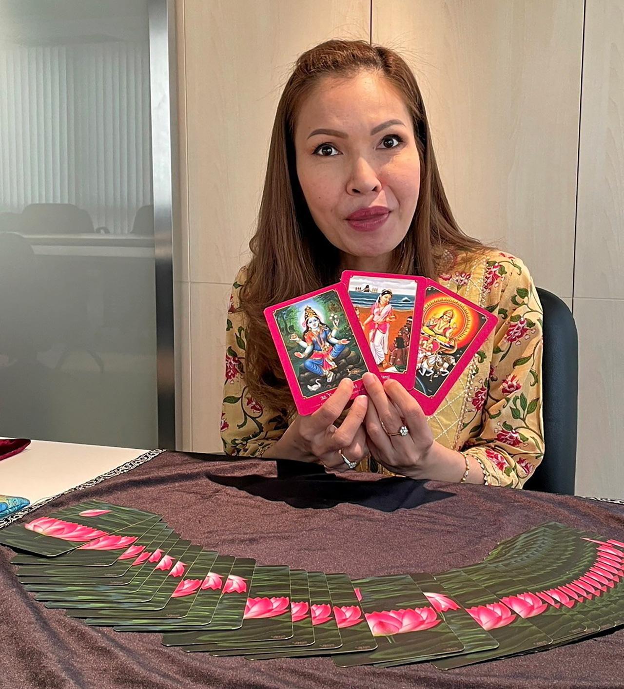 คนวงการบันเทิงจะต้องระวังเรื่องอะไรบ้างหลังดาวพฤหัสย้าย “องค์เทพจะเตือนคนบันเทิงให้ระวังเรื่องความรัก คือเปลี่ยนจากการสูญเสีย โรคภัยไข้เจ็บ แต่ตอนนี้จะเป็นเรื่องฉาว เกิดการทะเลาะกัน แย่งชิง ข่าวฉาว มือที่ 3 เมื่อก่อนดาวมฤตยูย้ายเข้าดวงเมืองเลยจะมีข่าวคดีข่าวเสียชีวิตเยอะเป็นใบไม้ร่วง แต่ตอนนี้ดาวพฤหัสย้ายเข้าดาวเมือง ราศีเมษคือดาวเมือง จะเกิดการเปลี่ยนแปลงการเลิกรา การเริ่มต้นใหม่ ดาราต้องประคับประคองความรักเพราะได้ไพ่พระกฤษณะ คือมากรัก รักซ้อน ส่วนไพ่พระแม่กาลี เกิดการแย่งชิงกัน จะมีเรื่องพวกนี้เยอะมาก แต่ก็โป๊ะง่าย รอบที่แล้วดาวมฤตยูเข้าดวงเมือง แต่รอบนี้ดาวพฤหัสย้ายเข้าดวงเมือง เป็นราชาโชค ถือเป็นเรื่องดี คือการเปลี่ยนแปลง อยากเปลี่ยนชีวิต อยากเป็นคู่ อยากมีแสงในตัวเอง อยากมีคอนเทนต์ในตัวเอง สร้างเรื่องให้มีตัวตน”