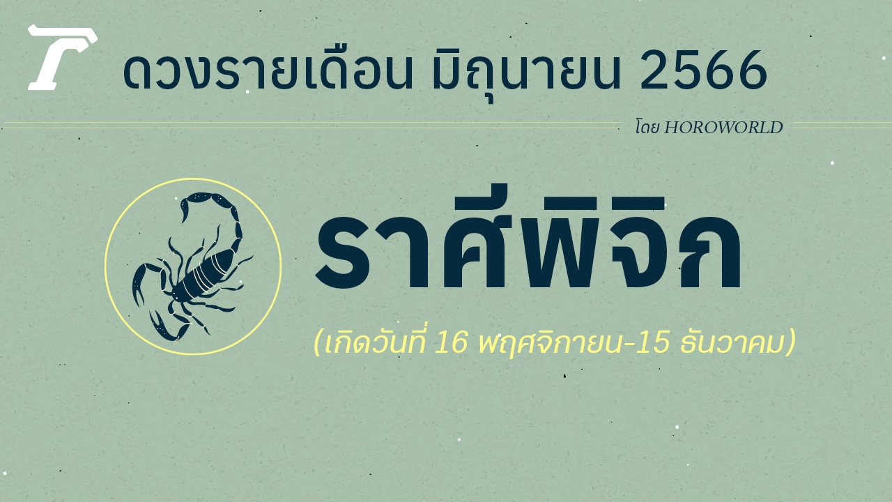 เปิดโชคชะตา ประจำเดือนมิถุนายน 2566 โดย Horoworld ชาวราศีพิจิก ช่วงนี้ควรหมั่นตรวจสุขภาพร่างกายอย่างสม่ำเสมอ เพราะมีสิทธิ์จะเกิดการเจ็บป่วยอย่างหนักเนื่องจากฝืนสภาพร่างกายทำงานหนักจนเกินไป ควรร่วมทำบุญบริจาคเครื่องมือทางการแพทย์ หรือบริจาคโลหิต เสริมดวงชะตาเพื่อให้มีสุขภาพร่างกายที่แข็งแรงและไม่ให้บาดเจ็บ
