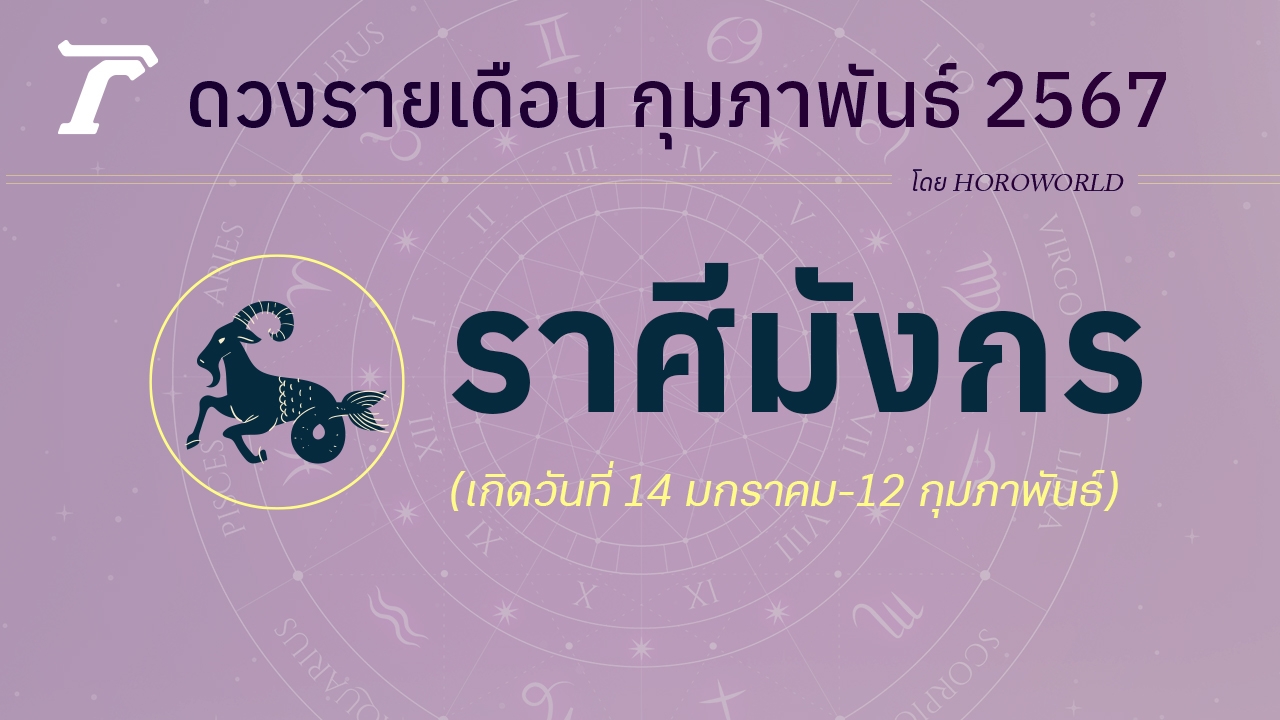 เปิดดวงชะตา เดือนกุมภาพันธ์ 2567 จัดเต็มทั้งดวงการงาน การเงิน ความรัก โชคลาภ สุขภาพ ข้อควรระวัง และเคล็ดลับเสริมดวง โดย Horoworld เดือนนี้ดวงของชาวราศีมังกร จะมีอะไรดีๆ เข้ามา มีเรื่องให้ต้องเรียนรู้ หน้าที่ใหม่ ตำแหน่งใหม่ที่คาดหวัง ให้ระวังอาจพบคนหวังดีแต่ประสงค์ร้าย คนหลอกลวง หรือคนหวังดีในสิ่งที่เราไม่ต้องการ ควรยืนหยัดสิ่งที่เป็นเรา ที่เราต้องการ ส่วนดวงเสี่ยงโชค ชาวราศีมังกรได้เฮแน่นอน มีเกณฑ์ถูกรางวัลใหญ่ แนะทำบุญ เติมน้ำมันตะเกียง บริจาคเพื่อการศึกษา การบวช องค์กรหรือการช่วยเหลือผู้หลงผิด