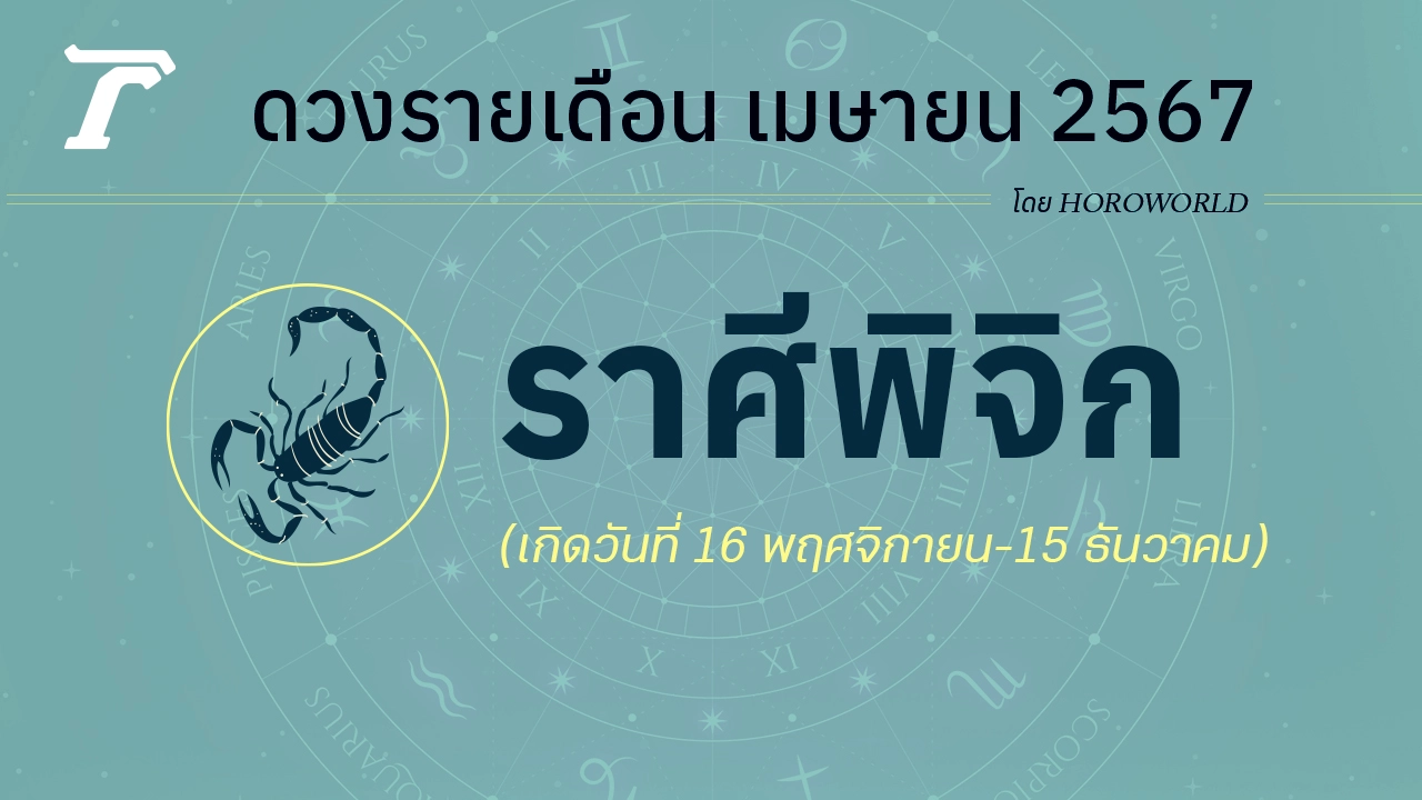 เปิดดวงชะตา เดือนเมษายน 2567 จัดเต็มทั้งดวงการงาน การเงิน ความรัก โชคลาภ สุขภาพ ข้อควรระวัง และเคล็ดลับเสริมดวง โดย Horoworld ข่าวดีสำหรับชาวราศีพิจิก ธุรกิจการงานจะสำเร็จ ได้กำไรจากการลงทุน ส่วนดวงการเงินจะดีขึ้น ถ้ามีปัญหา หรือติดขัด จะผ่านไปได้ด้วยดี บุญหนุนนำจะทำให้ได้โชคลาภสมใจ ช่วงนี้ให้ดูแลจิตใจตัวเอง เลิกคิดมาก ลดความเครียด สุขภาพจะดียิ่งขึ้น
