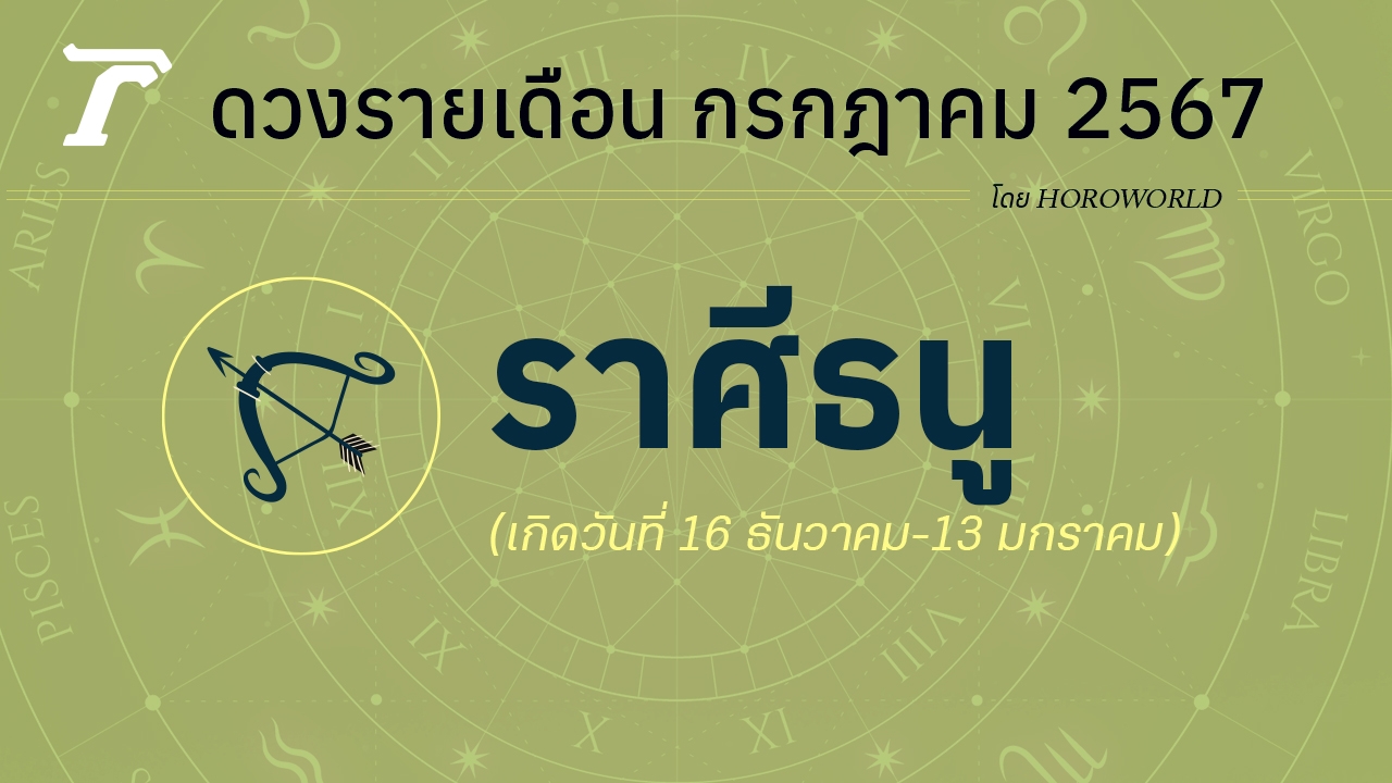 เปิดดวงการงาน การเงิน ความรัก โชคลาภ สุขภาพ ข้อควรระวัง และเคล็ดลับเสริมดวง เดือนกรกฎาคม 2567 โดย Horoworld สำหรับชาวราศีธนู เดือนนี้เหนื่อยหน่อย มีงานตลอด ต้องวิ่งงานข้างนอกตลอด แต่ก็ทำได้ดีและเสร็จทัน ส่วนดวงการเงิน ให้อดทน ไม่ขัดสนเรื่องเงิน ให้ขยันจะมีรายได้เพิ่มขึ้น ห้ามเชื่อใครง่ายๆ อาจทำให้เสียเงิน ให้ระวัง เรื่องการเปลี่ยนแปลง เมื่อเกิดขึ้นแล้ว ผลออกมา ดีหรือไม่ดีก็ได้ ให้รับมืออย่างมีสติ