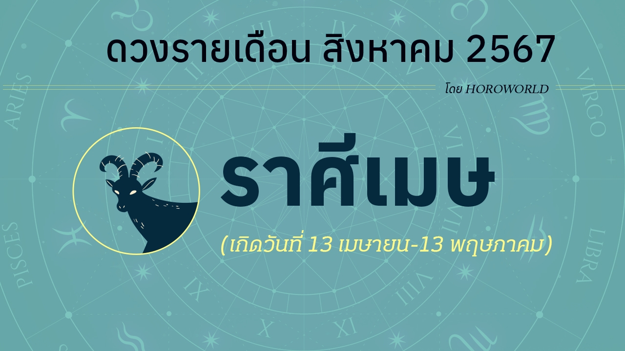 เปิดดวงชะตา เดือนสิงหาคม 2567 โดย Horoworld ดวงการงาน การเงิน ความรัก โชคลาภ สุขภาพ ข้อควรระวัง และเคล็ดลับเสริมดวง ชาวราศีเมษ เดือนนี้ฟ้าเปิด เป็นช่วงทำเงิน มีช่องทางทำเงินใหม่ๆ ดวงเปลี่ยนแปลง มีเกณฑ์โยกย้าย เปลี่ยนงาน งานทำเงินให้ ดวงนี้ดาวโชคส่งแรงหนุน อาจมีโชคลาภจากการเสี่ยงโชคเข้ามาด้วย ควรไหว้พระปางไสยาสน์ ทำบุญของใช้โลหะ มีดโกน เข็มเย็บผ้า เครื่องมือแพทย์ บริจาคเกี่ยวกับโรคกล้ามเนื้ออ่อนแรง ผู้พิการ โรงพยาบาลทหารผ่านศึก