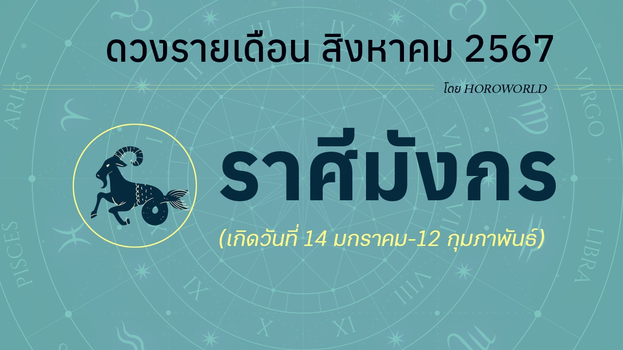 เปิดดวงชะตา เดือนสิงหาคม 2567 โดย Horoworld ดวงการงาน การเงิน ความรัก โชคลาภ สุขภาพ ข้อควรระวัง และเคล็ดลับเสริมดวง เดือนสิงหาคม ดวงชาวราศีมังกร มีการเปลี่ยนแปลง มีการโยกย้ายงาน ช่วงนี้เป็นโอกาสที่อาจได้งานที่น่าสนใจ ส่วนการเงินมีแนวโน้มที่ดี มีรายได้เพิ่มขึ้นจากหลายช่องทาง อาจมีโชคลาภกรุบกริบพอหอมปากหอมคอ ช่วงนี้พูดดีเป็นศรีแก่ปาก ถ้าพูดแล้วแย่ลง เงียบเสียดีกว่า