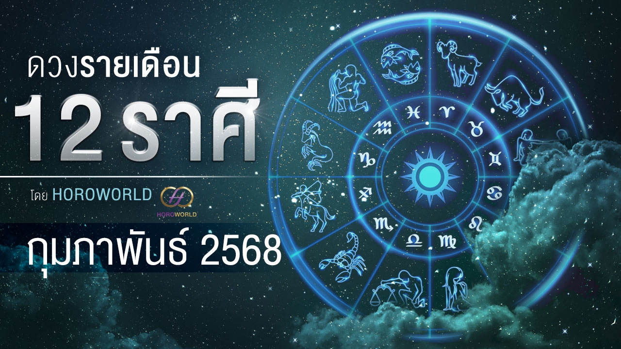 เปิดดวงชะตา 12 ราศีเดือนกุมภาพันธ์ 2568 by Horoworld จัดมาให้ครบทั้งดวงการงาน การเงิน ความรัก โชคลาภ สุขภาพ พร้อมเคล็ดลับเสริมดวงปังตลอดเดือนกุมภาพันธ์ เผย ราศีไหนจะรวยจากการเสี่ยงโชค หรือราศีไหนต้องระวัง อย่ารอช้า เช็กดวงกันด่วน