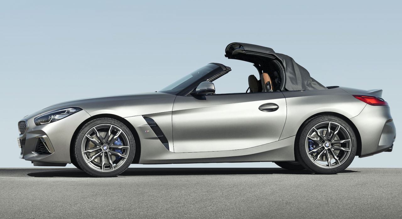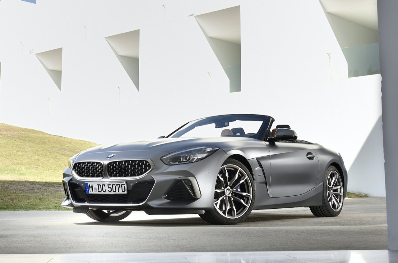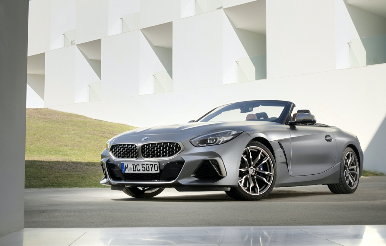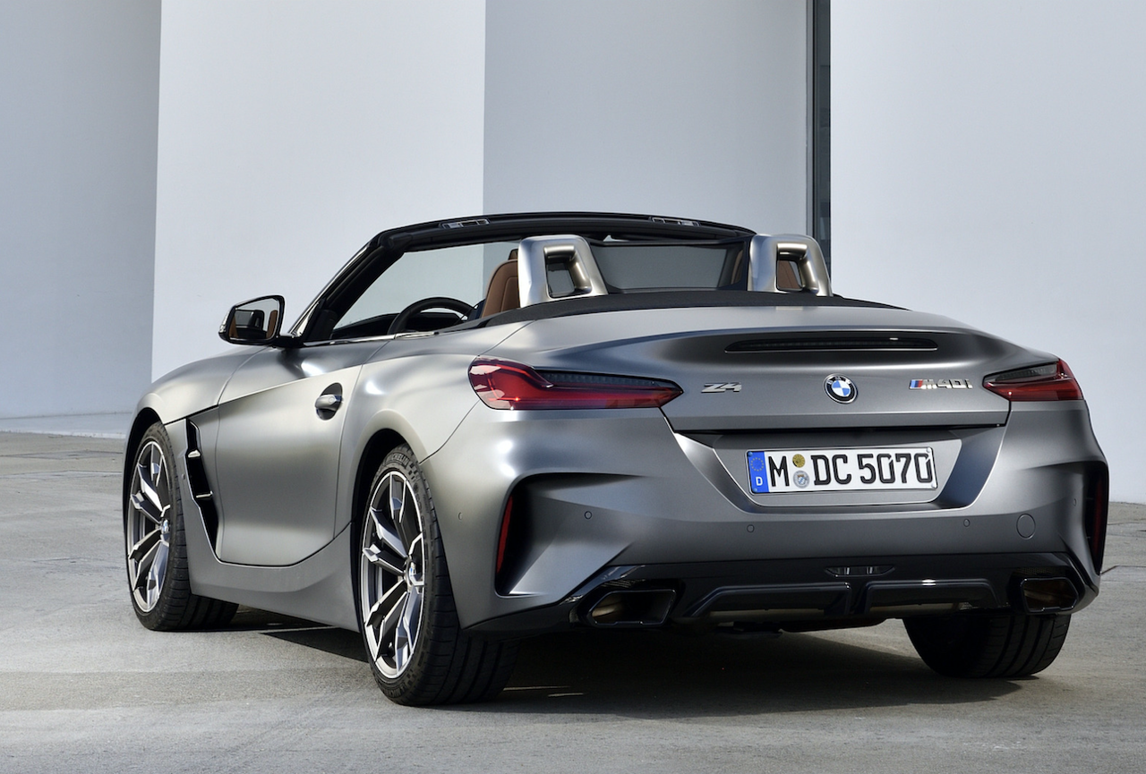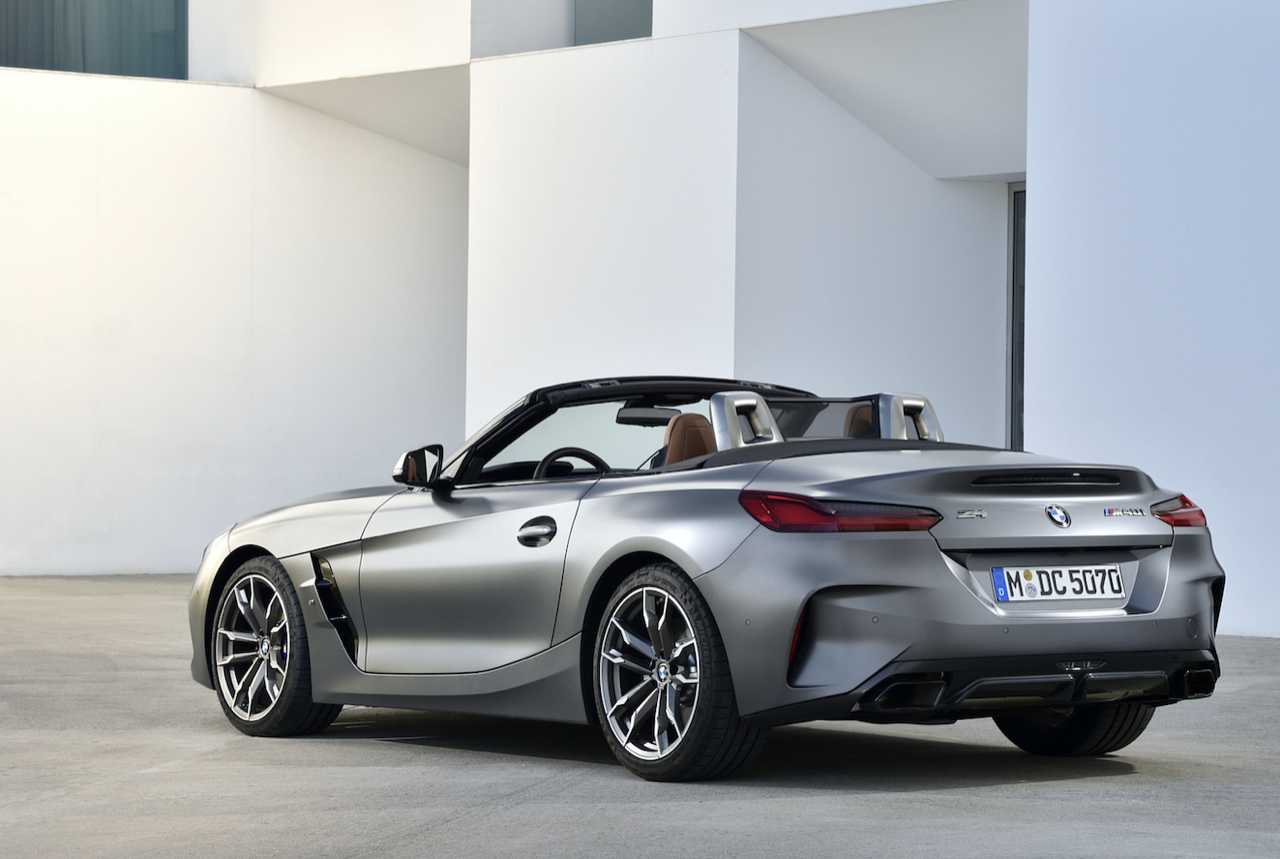 รถสปอร์ตโรดสเตอร์ BMW new Z4 กลับมาโลดแล่นอีกครั้งในโฉมใหม่ล่าสุดปี 2019 งานออกแบบยังคงเอกลักษณ์ความเป็นโรดสเตอร์พันธุ์แท้ด้วยตัวถังเปิดประทุน แบบสองที่นั่ง พร้อมหลังคาผ้าใบที่ทำงานด้วยระบบไฟฟ้า เปิด-ปิดได้โดยใช้เวลาแค่ 10 วินาที รองรับการเปิด-ปิดขณะขับขี่ได้ที่ความเร็วไม่เกิน 50 กิโลเมตรต่อชั่วโมง ด้านหน้ามีกระจังหน้าทรงไตคู่ดีไซน์ใหม่แบบตะแกรง กระโปรงหน้าทรงยาว ไฟหน้า LED แบบใหม่จัดเรียงในแนวตั้ง ช่องรับลมขนาดใหญ่บริเวณซุ้มล้อหน้า ขณะที่ส่วนท้ายรถก็ขับเน้นบุคลิกรถสปอร์ตด้วยสปอยเลอร์ที่ผนึกมาเป็นส่วนหนึ่งของฝากระโปรงท้าย ซึ่งซ่อนพื้นที่เก็บของที่มีความจุถึง 281 ลิตร มากกว่าในรุ่นก่อนหน้าถึง 50%