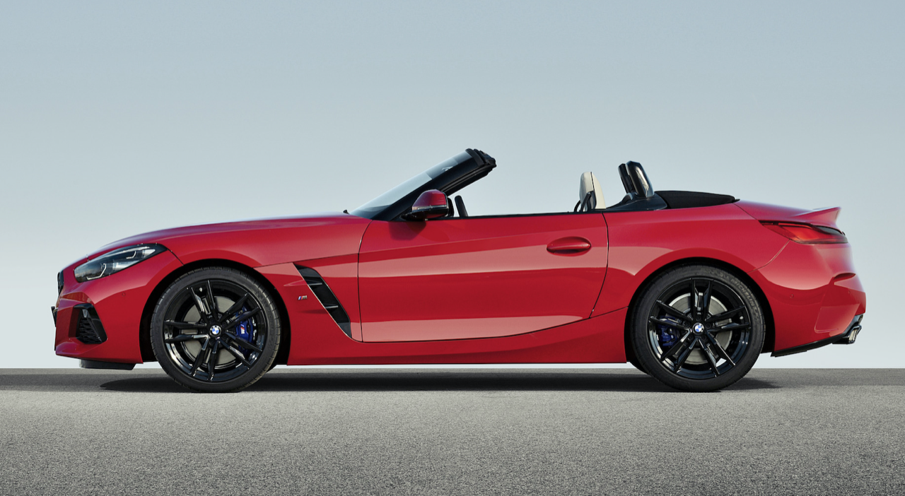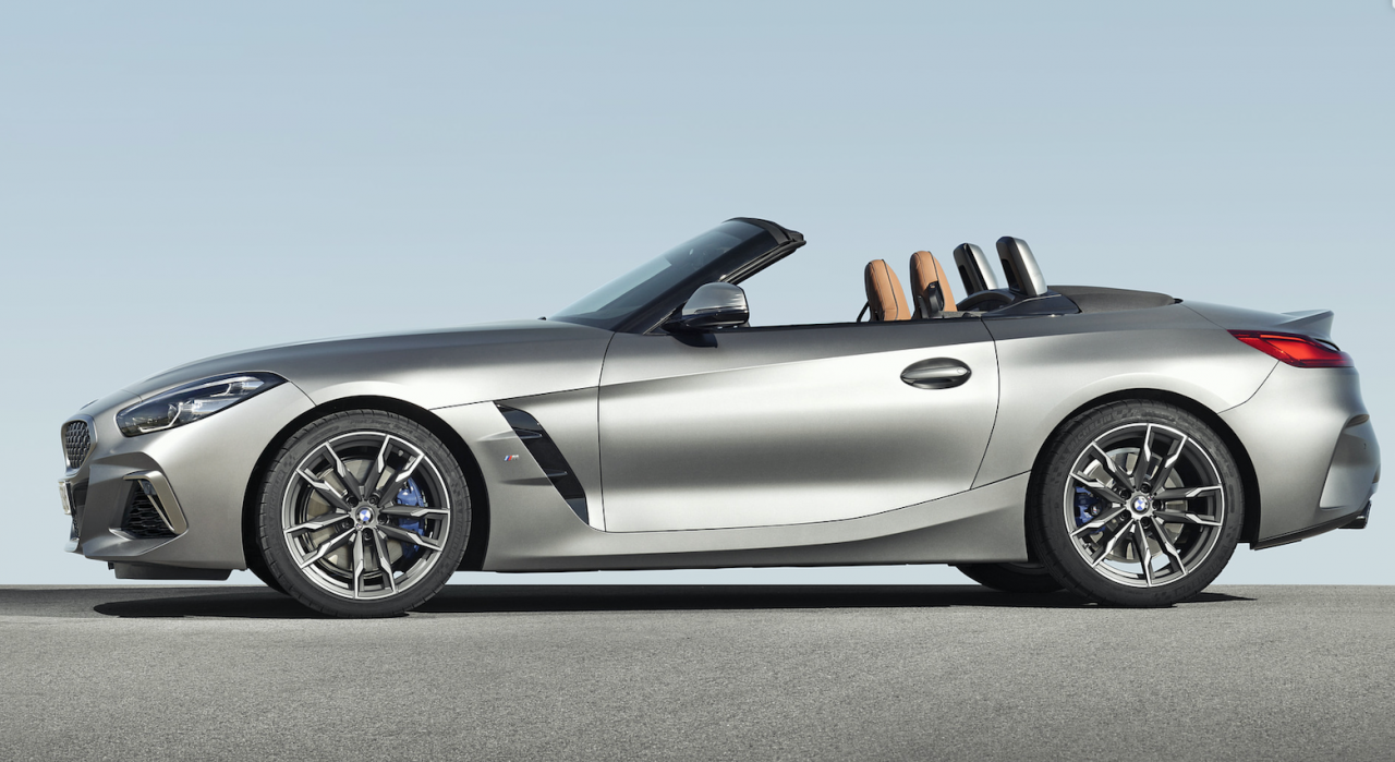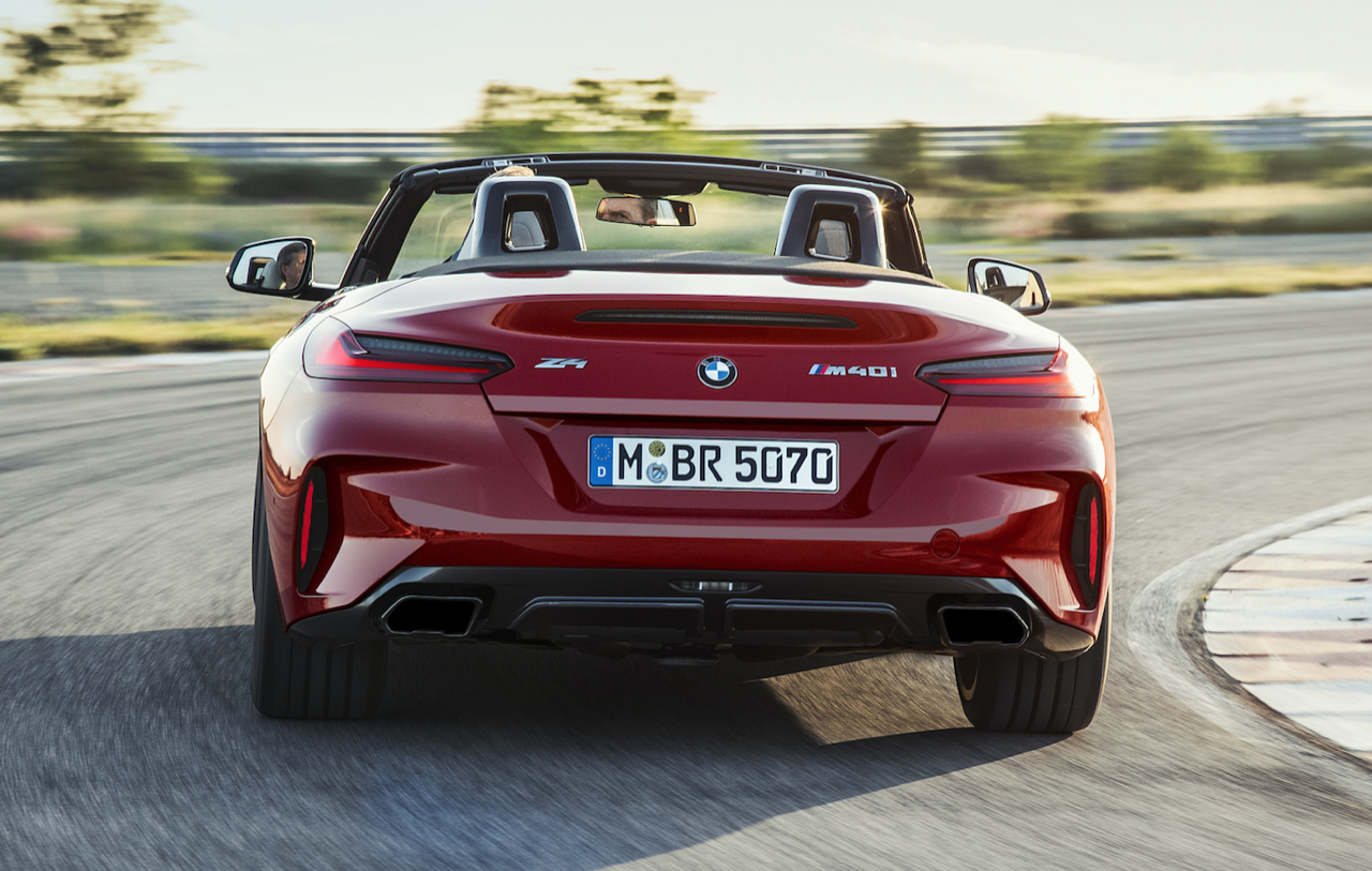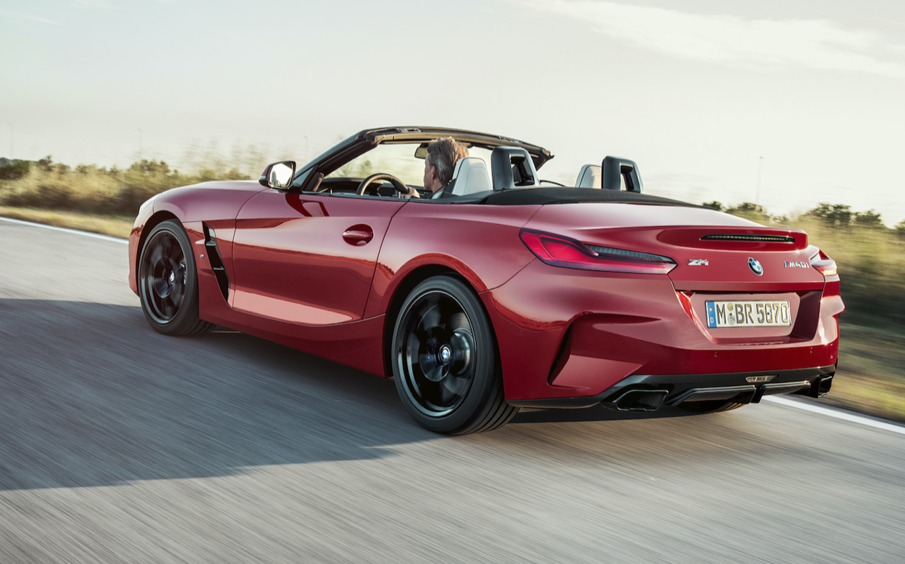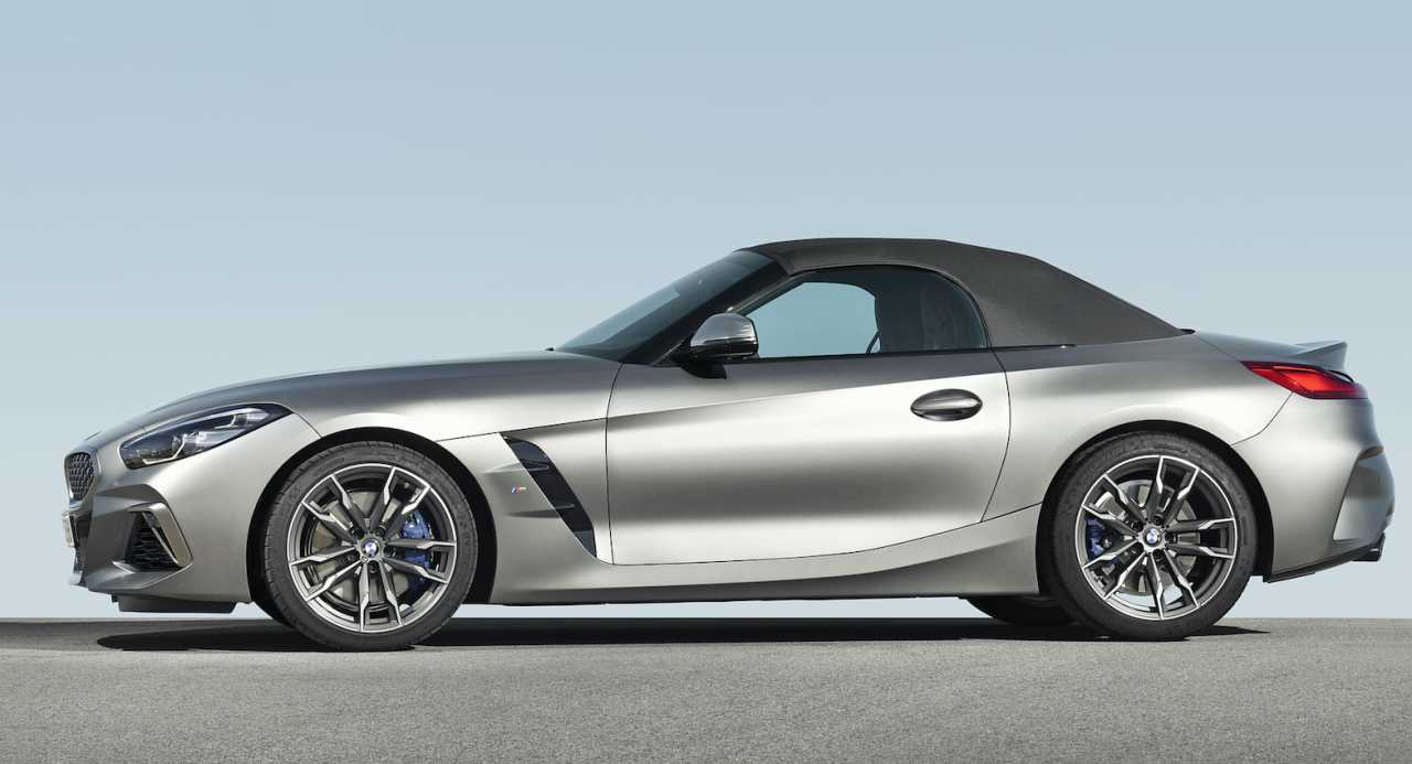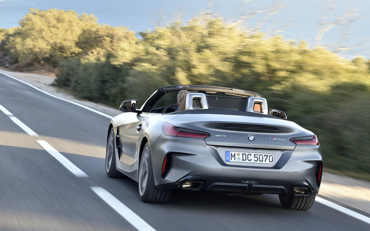 รถสปอร์ตโรดสเตอร์ BMW new Z4 กลับมาโลดแล่นอีกครั้งในโฉมใหม่ล่าสุดปี 2019 งานออกแบบยังคงเอกลักษณ์ความเป็นโรดสเตอร์พันธุ์แท้ด้วยตัวถังเปิดประทุน แบบสองที่นั่ง พร้อมหลังคาผ้าใบที่ทำงานด้วยระบบไฟฟ้า เปิด-ปิดได้โดยใช้เวลาแค่ 10 วินาที รองรับการเปิด-ปิดขณะขับขี่ได้ที่ความเร็วไม่เกิน 50 กิโลเมตรต่อชั่วโมง ด้านหน้ามีกระจังหน้าทรงไตคู่ดีไซน์ใหม่แบบตะแกรง กระโปรงหน้าทรงยาว ไฟหน้า LED แบบใหม่จัดเรียงในแนวตั้ง ช่องรับลมขนาดใหญ่บริเวณซุ้มล้อหน้า ขณะที่ส่วนท้ายรถก็ขับเน้นบุคลิกรถสปอร์ตด้วยสปอยเลอร์ที่ผนึกมาเป็นส่วนหนึ่งของฝากระโปรงท้าย ซึ่งซ่อนพื้นที่เก็บของที่มีความจุถึง 281 ลิตร มากกว่าในรุ่นก่อนหน้าถึง 50%